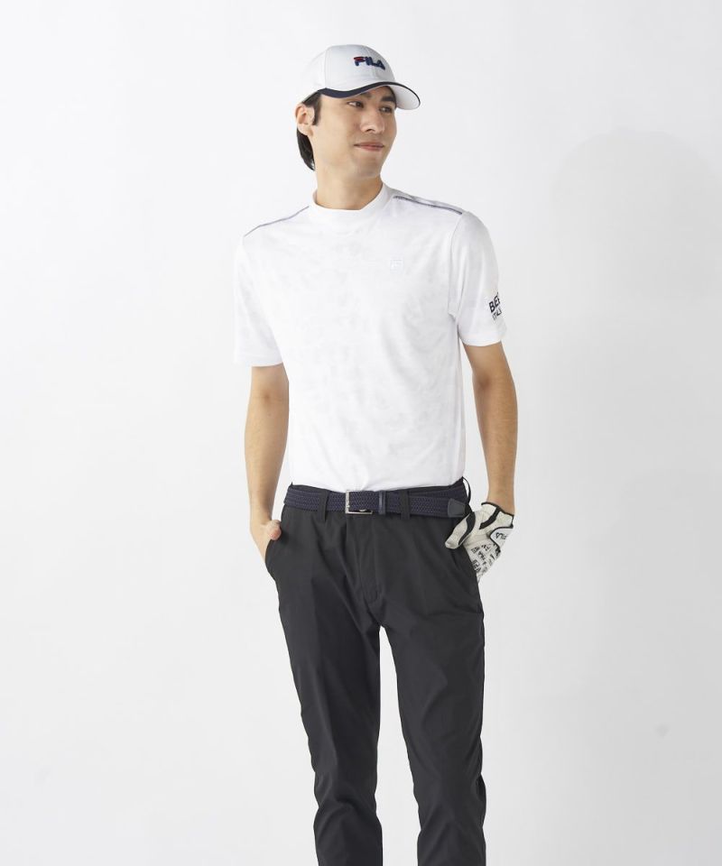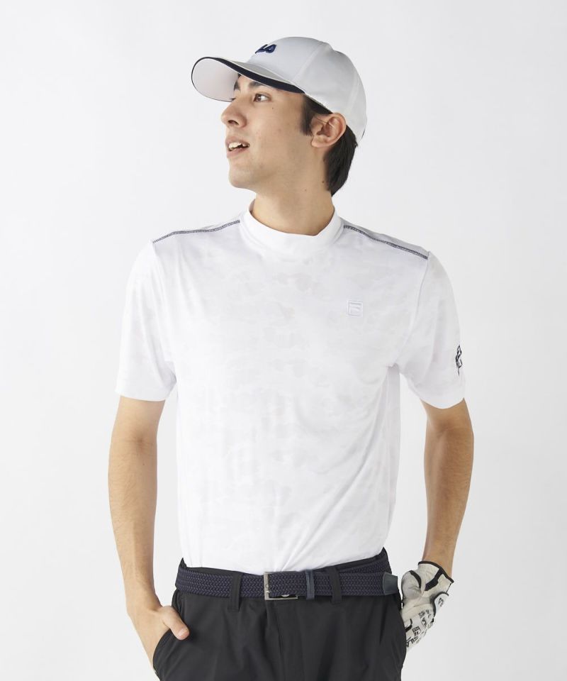 ジャガード編みモックネック半袖シャツ | 吸汗速乾・UVカット
