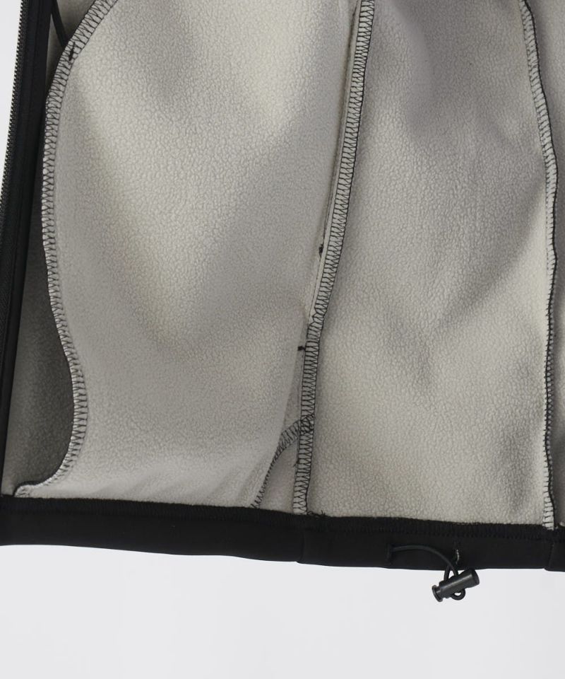ミニマルなソリッドカラーに、肩から袖口にかけてのスポーティな切替ラインが洗練されたアクセント。このラインが、着用時のシャープな印象と、動きの美しさを際立たせます。袖付け部分にはストレッチパーツを採用し、可動域を最大化。シンプルでありながら機能美に溢れた、大人のアクティブスタイルにふさわしい一着です。