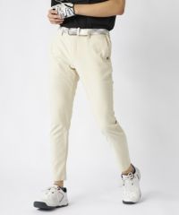 裾上げ要らずの9分丈に設計された細身のテーパードシルエットが特徴。脚のラインをすっきりと美しく見せ、洗練された大人のゴルフスタイルを演出します。ウエストはシャーリング仕様でゆったりと履け、腰裏にはシャツが出にくい滑り止め、さらにオリジナルDカンを装備するなど、プレー中の快適性に徹底的にこだわりました。