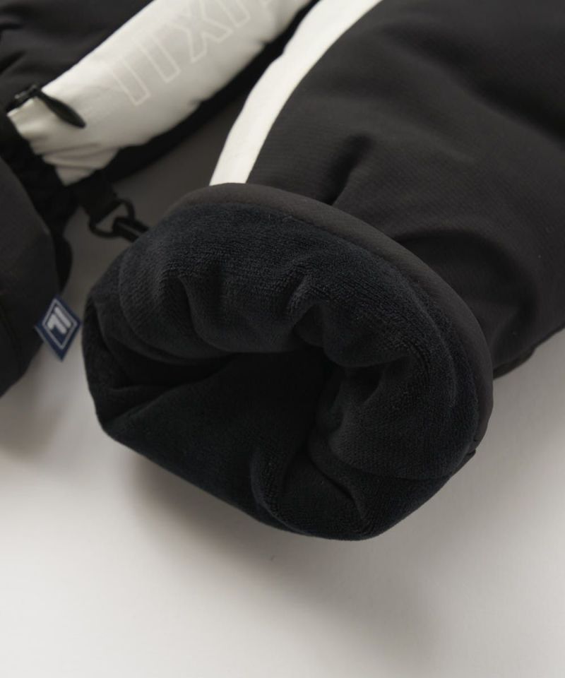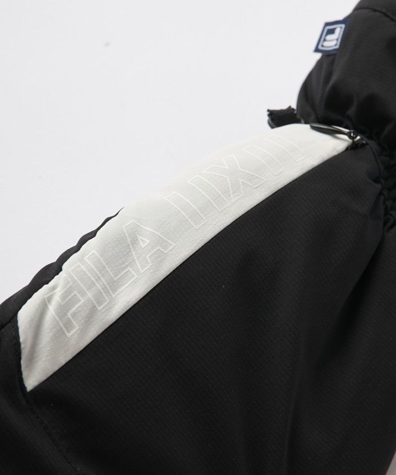 マットなタフタと雪柄をイメージした切替、そしてFILAらしい配色デザインが、スポーティかつ洗練されたルックスを演出。機能アイテムでありながらファッション性も高く、キャディバッグから取り出す際にもスマートに映えます。シンプルで合わせやすいデザインなので、どんなアウターやグローブともクールに馴染みます。