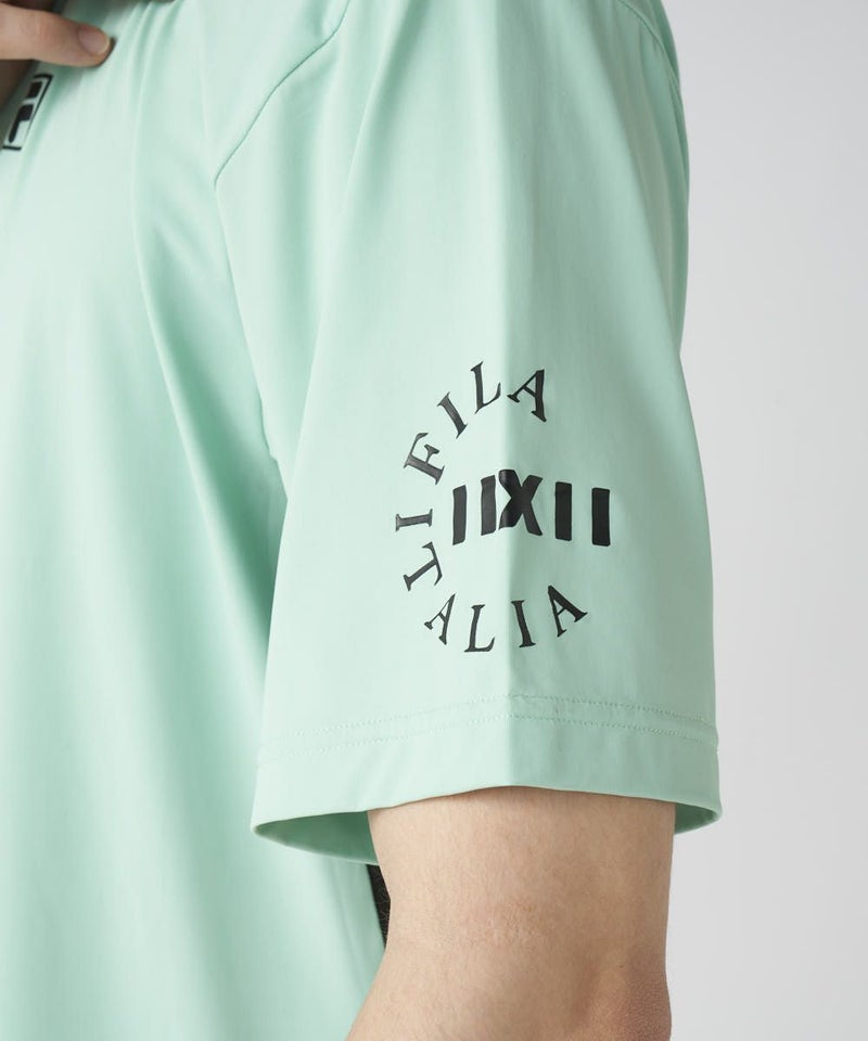 脇の切り替えと、バックプリントが特徴のポロシャツ。シンプルにショートパンツで合わせるスタイルがおすすめです!接触冷感機能付きで、夏ゴルフも快適に楽しめます。