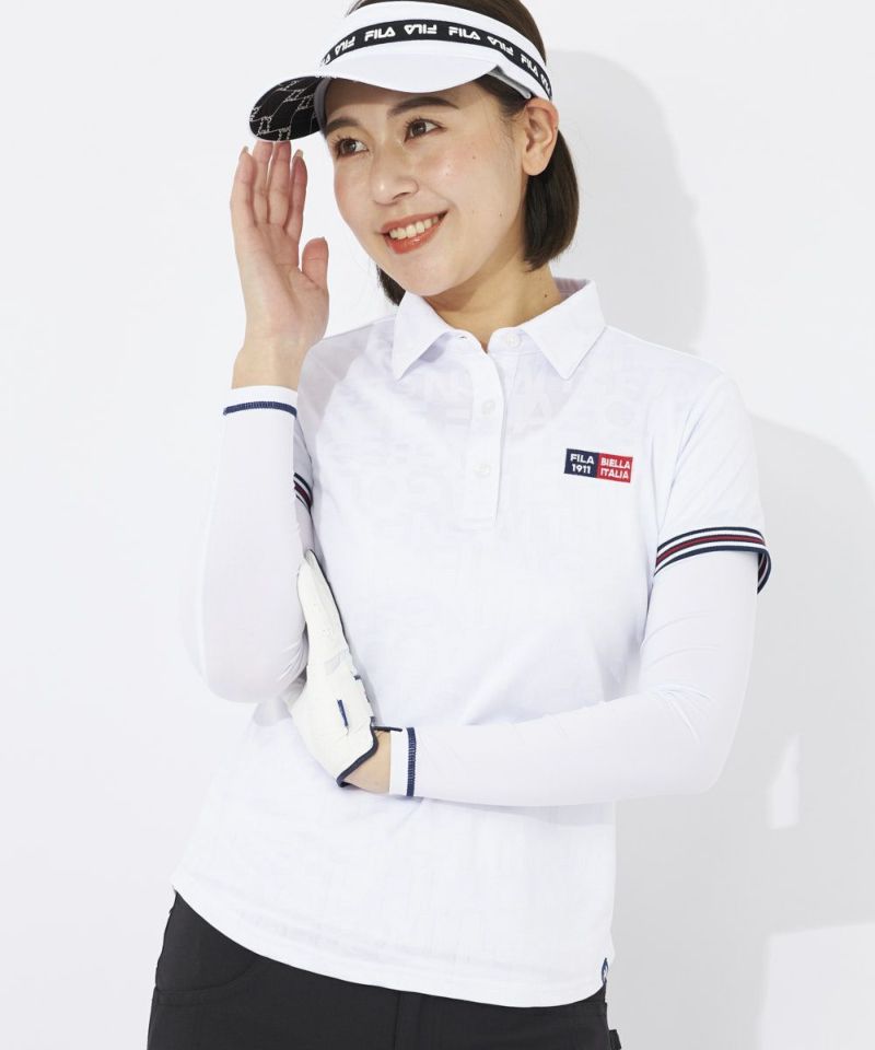 FILA GOLFのロゴをランダムにジャガードで表現したスポーティなシャツ。ストレッチ性の良い再生ポリエステル素材を採用しています。ジャガード生地は立体感+高級感があるため品のある印象に魅せてくれます。袖口リブのヘリテージストライプテープがアクセントに!左の胸元と背面のロゴがポイント