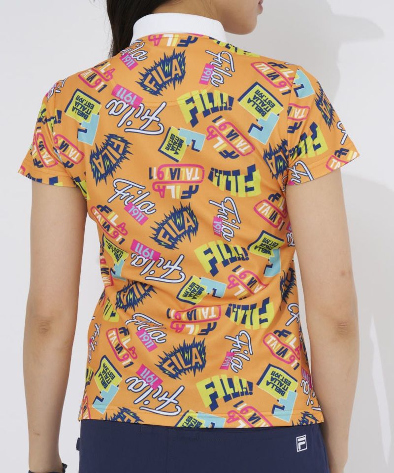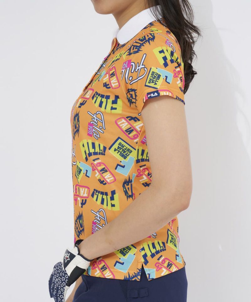 コーディネートの主役になる、ポップで楽しいコミック柄の半袖ポロシャツ。衿リブの首に当たる部分をメッシュ編みにすることで、通気性を持たせました。