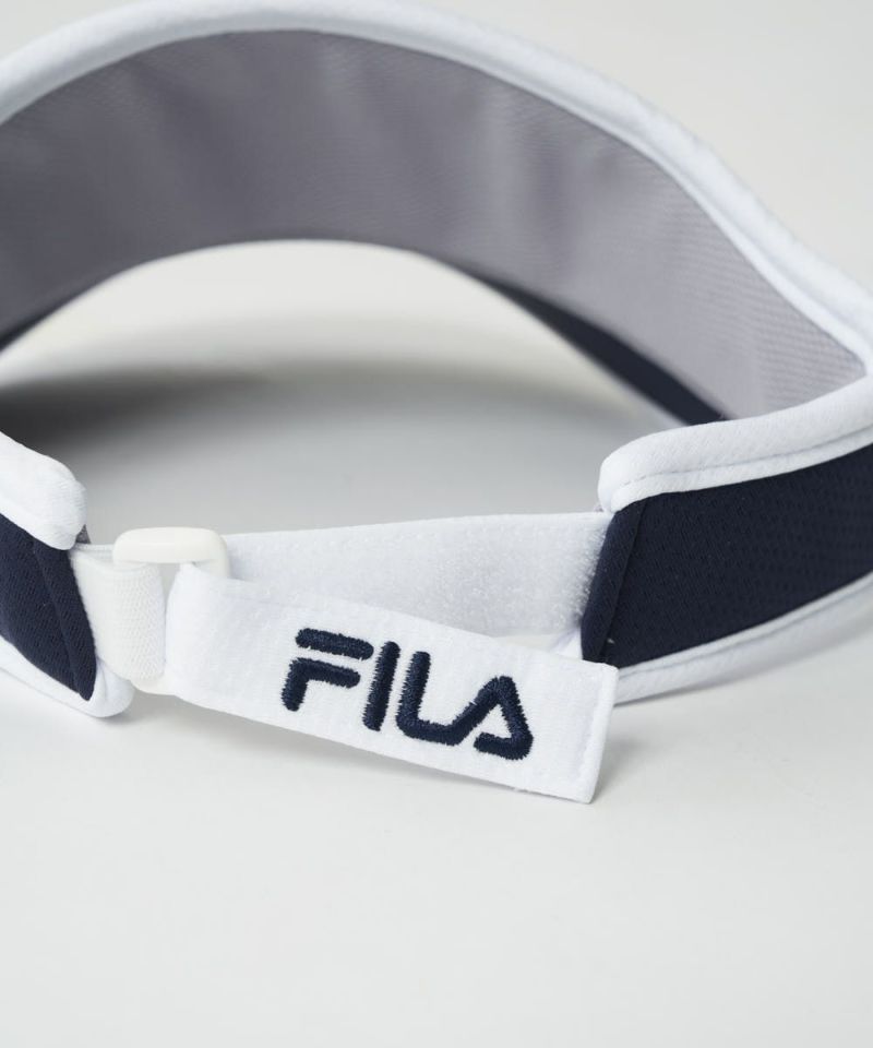 少し大きめのツバが特徴のサンバイザー。コーディネートに便利な、同素材のシュシュ付き。前髪を上げている時にも。生え際が焼けにくい腰高タイプ。
