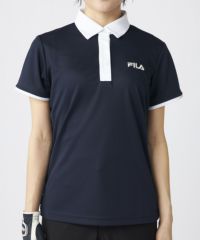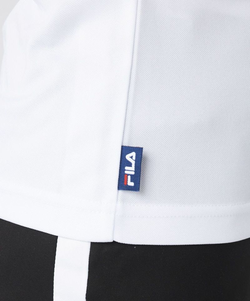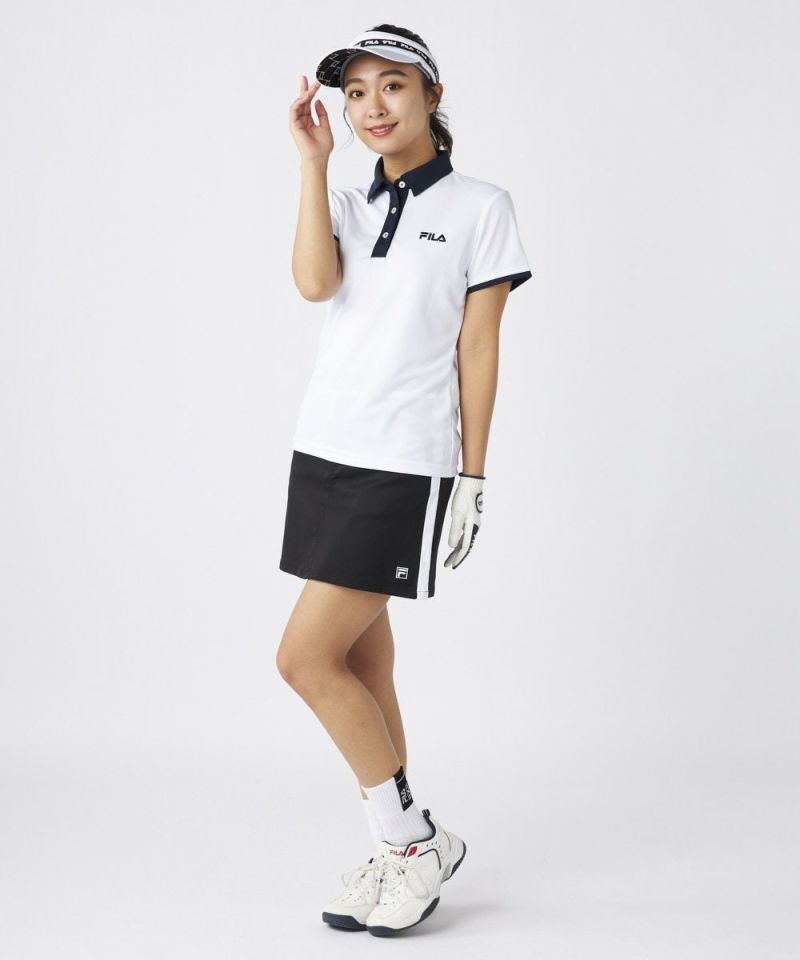 衿のバイカラーがかわいい半袖ポロシャツ。ベーシックなデザインなので、スカート、パンツ選ばずコーディネートを楽しめます。程よい丈感で、アウトでもインでもバランスよく着用いただけます。バックデザインにはフィラゴルフのキャッチコピー【Fun Golf】のテキストを小さく入れており、細部までこだわったオシャレなデザインです。