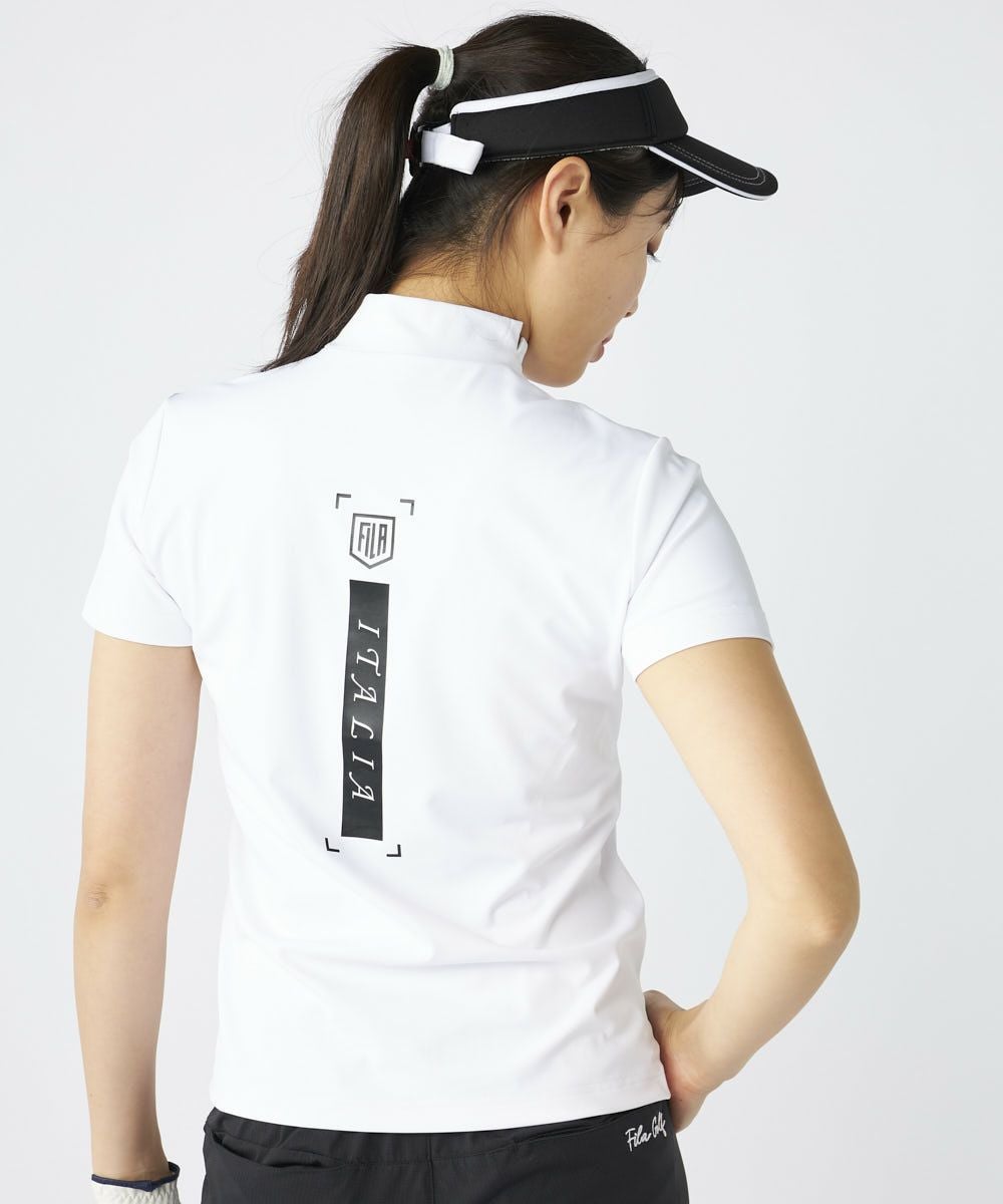 サラッとした素材で夏ゴルフにもおすすめなモックネックシャツ。シンプルなデザインながら、バックデザインもおしゃれです!パンツ、スカート問わずかっこいいスポーティなスタイルにおすすめです