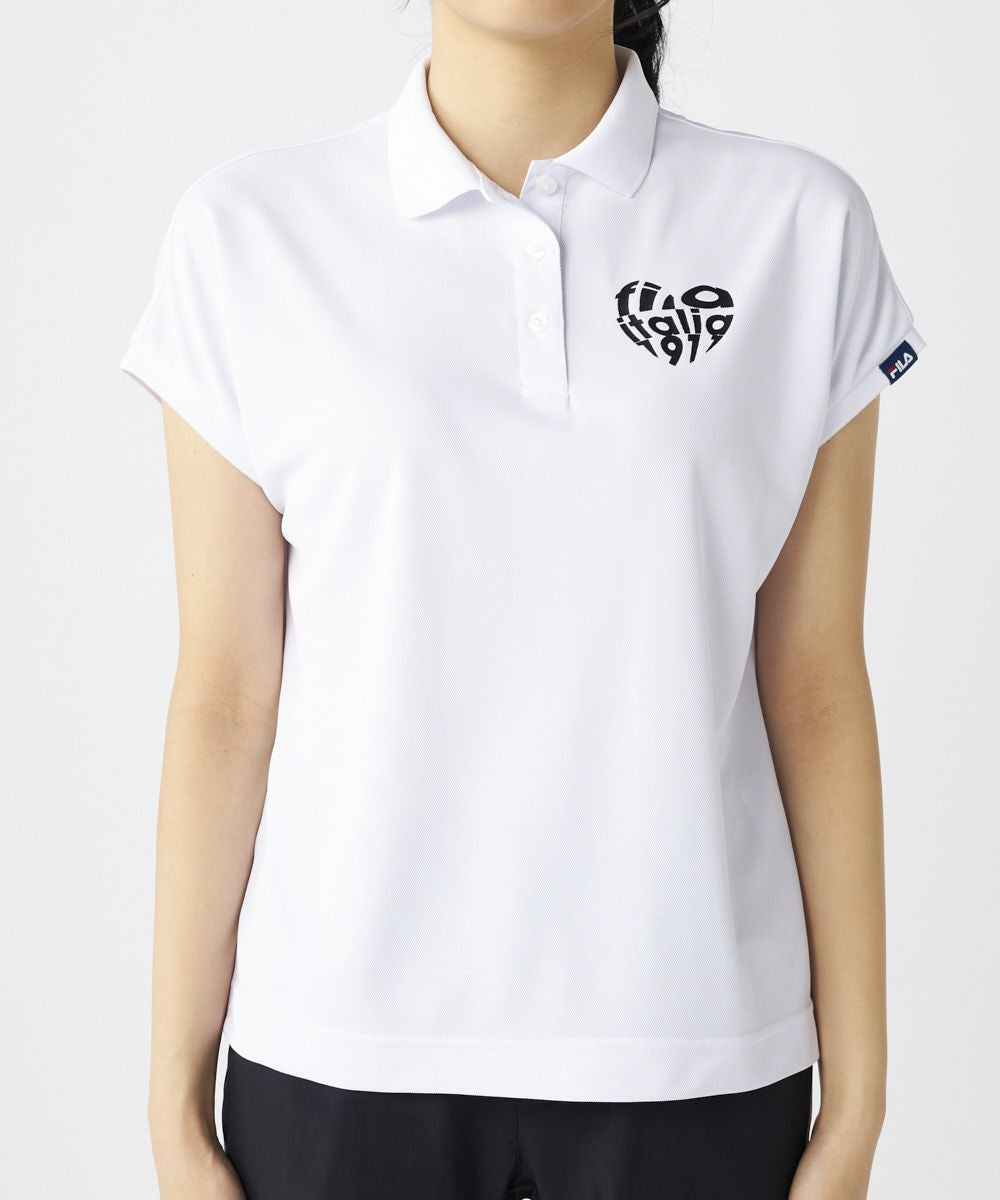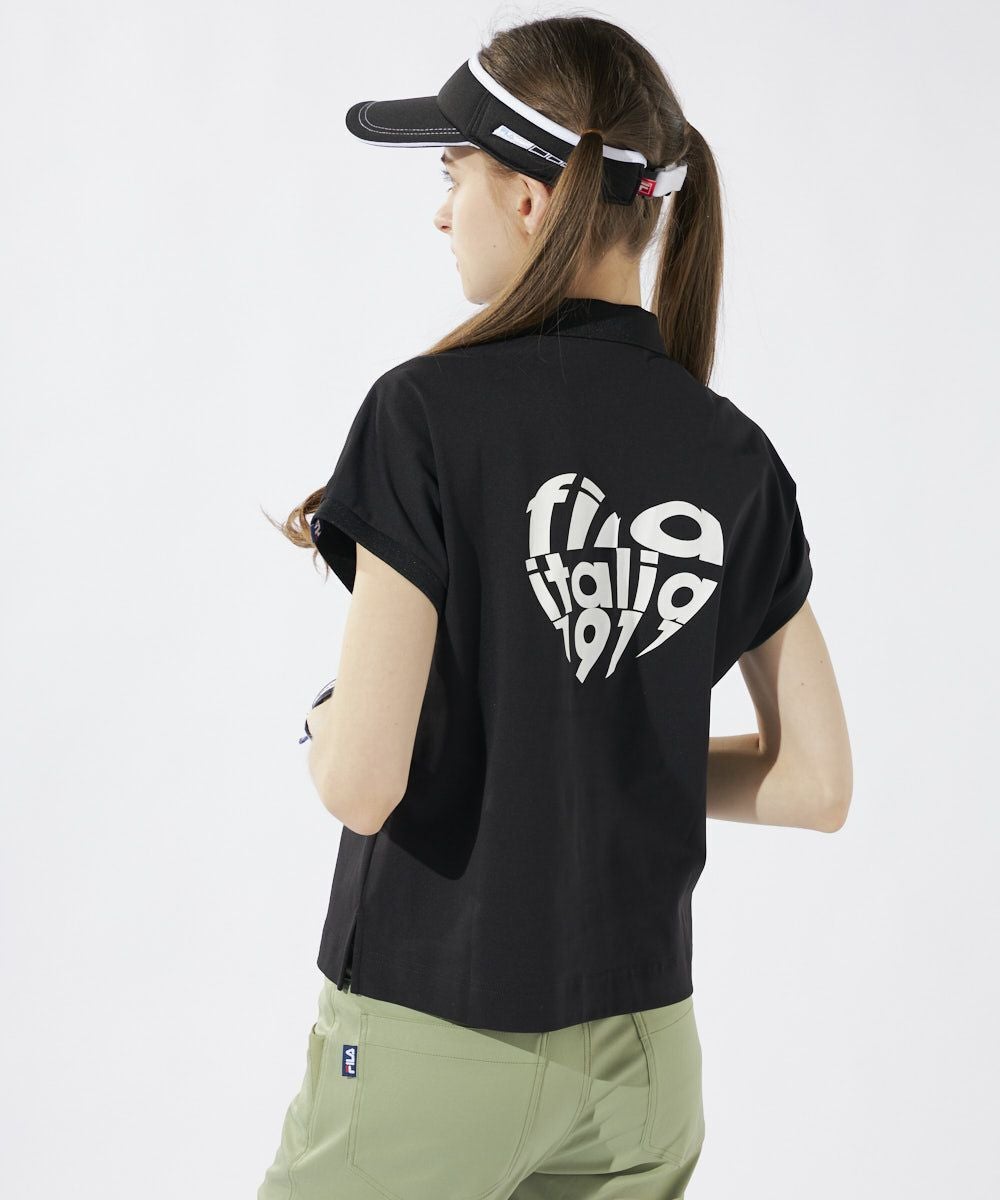 ハート型に切り抜かれたロゴがかわいいポロシャツ。