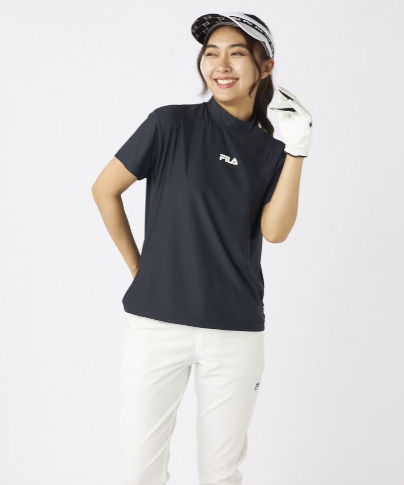 SUPER NYLONCOOL 裾ドロストコード付き 半袖モックネックシャツ | 吸汗速乾、UVカット、接触冷感