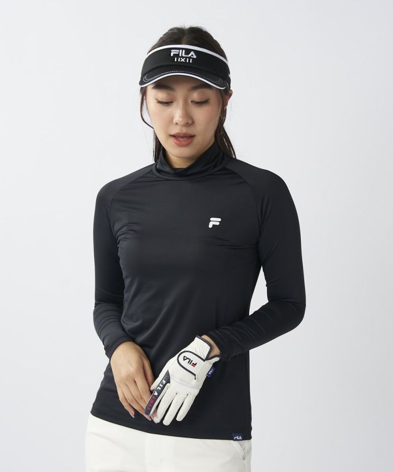 ベーシックなハイネック長袖インナーシャツ。季節を問わず、着用いただけるので、長くご利用いただけます。紫外線が気になる季節にもおすすめです。