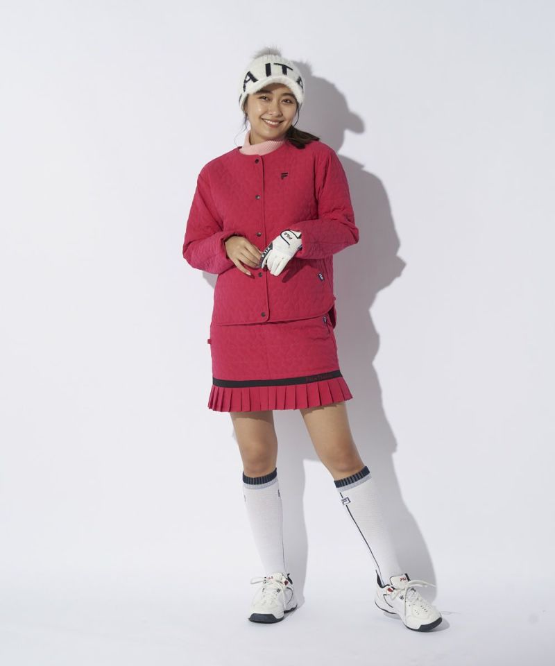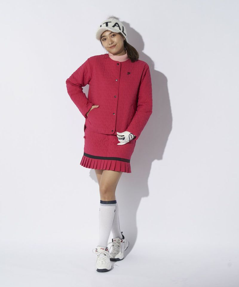 中綿ノーカラーブルゾン/キルティング/ハート柄|4WAYストレッチ/撥水加工