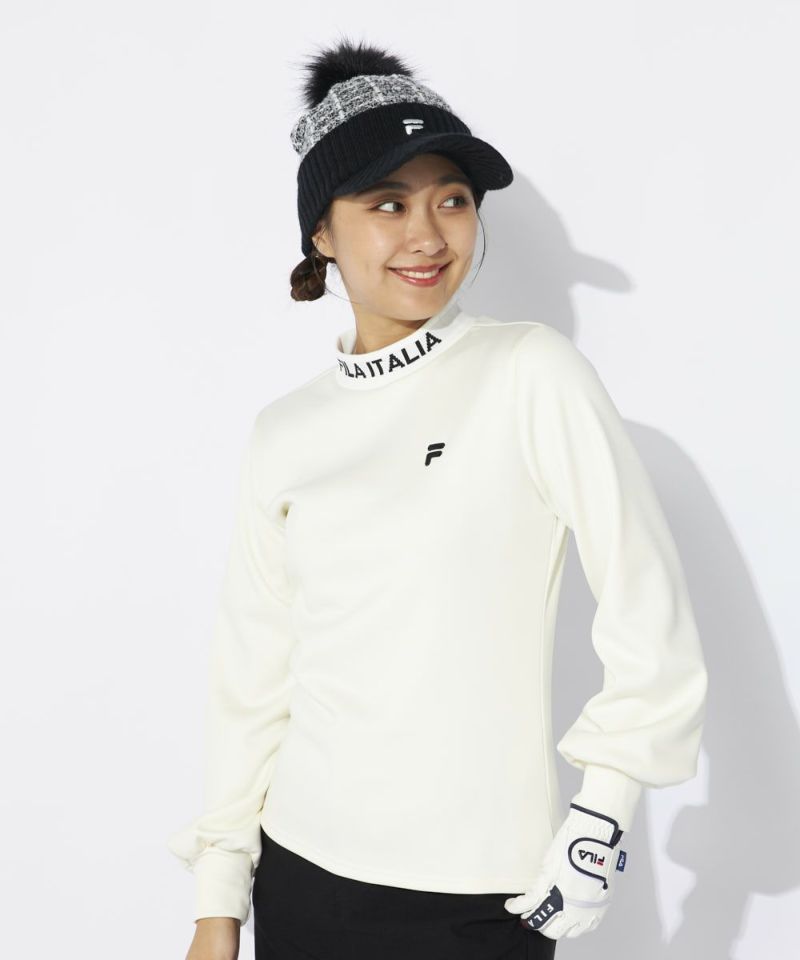ジャガードのリブ衿がポイントのモックネックシャツ。袖口をふんわりさせたフェミニンなデザイン。裏面がベロア調の柔らかく肌触りの良いストレッチ素材を使用。袖口のボリュームは程よいボリューム感なので、インナーとしてもご利用いただけます。