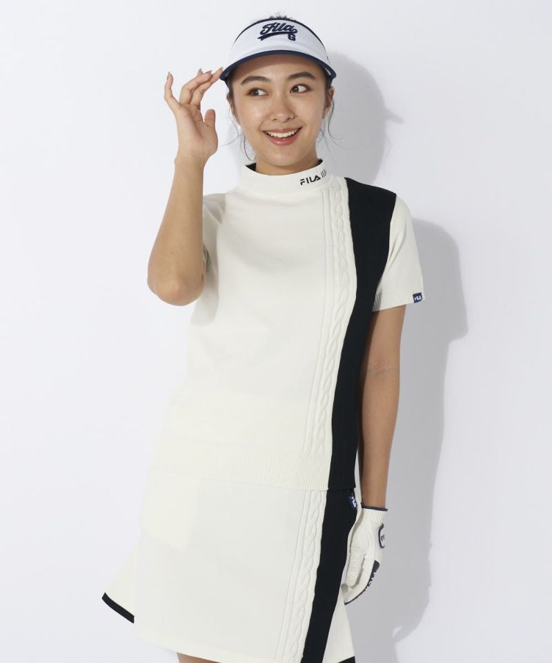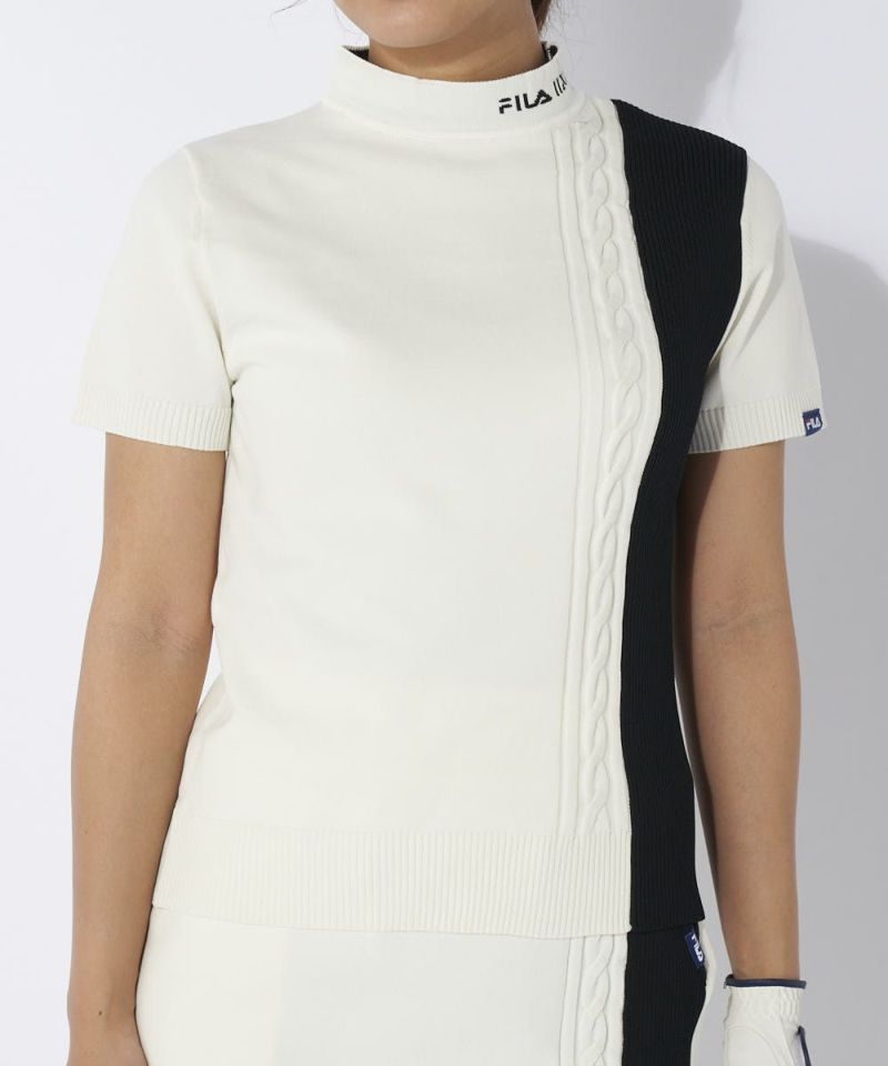 半袖モックネック軽量ニット/セットアップ対応可|撥水加工