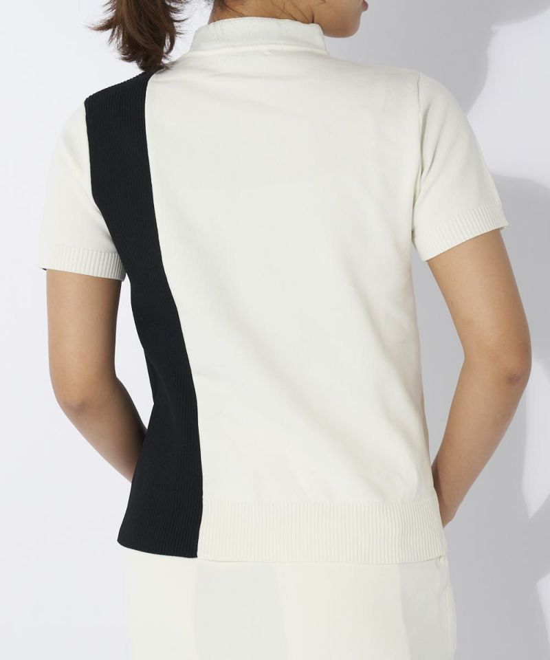 細見えするバイカラー切替が特徴的な半袖ニットシャツ。編地変化を付けて立体感のある仕上がりに。