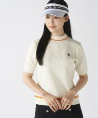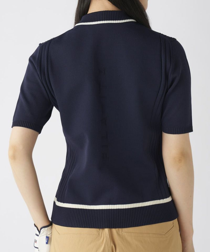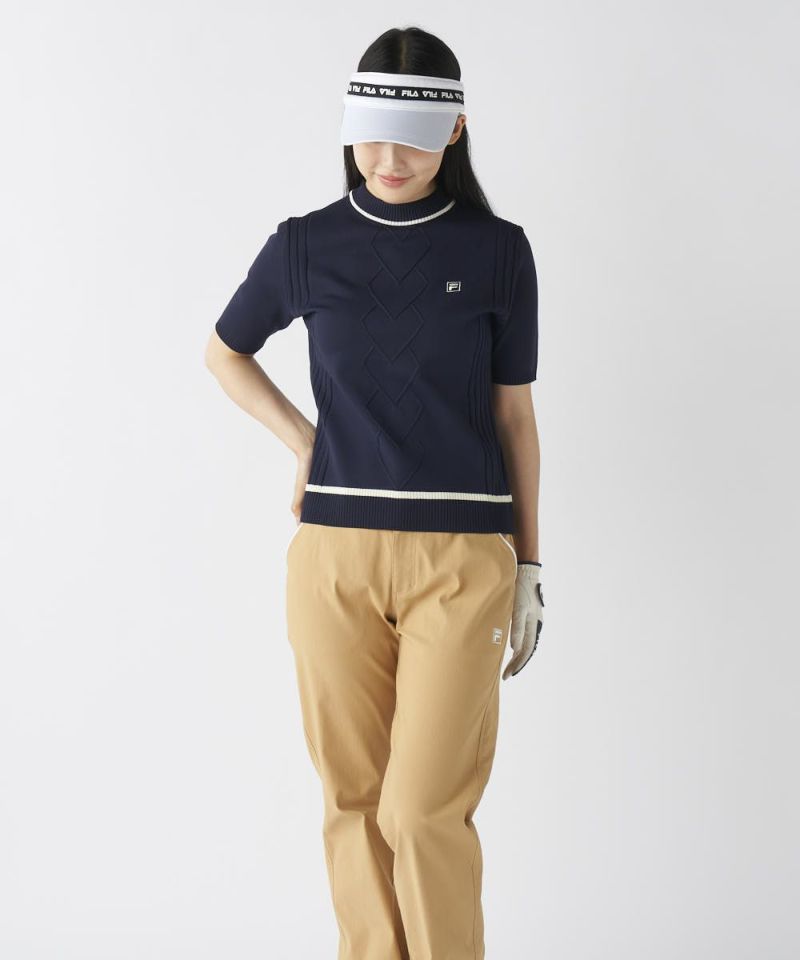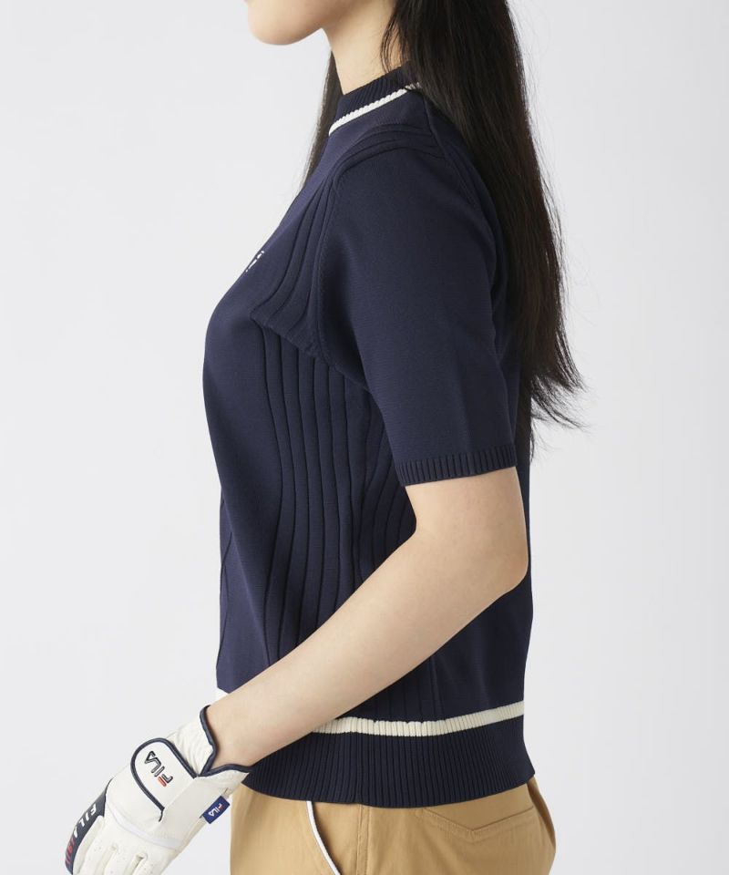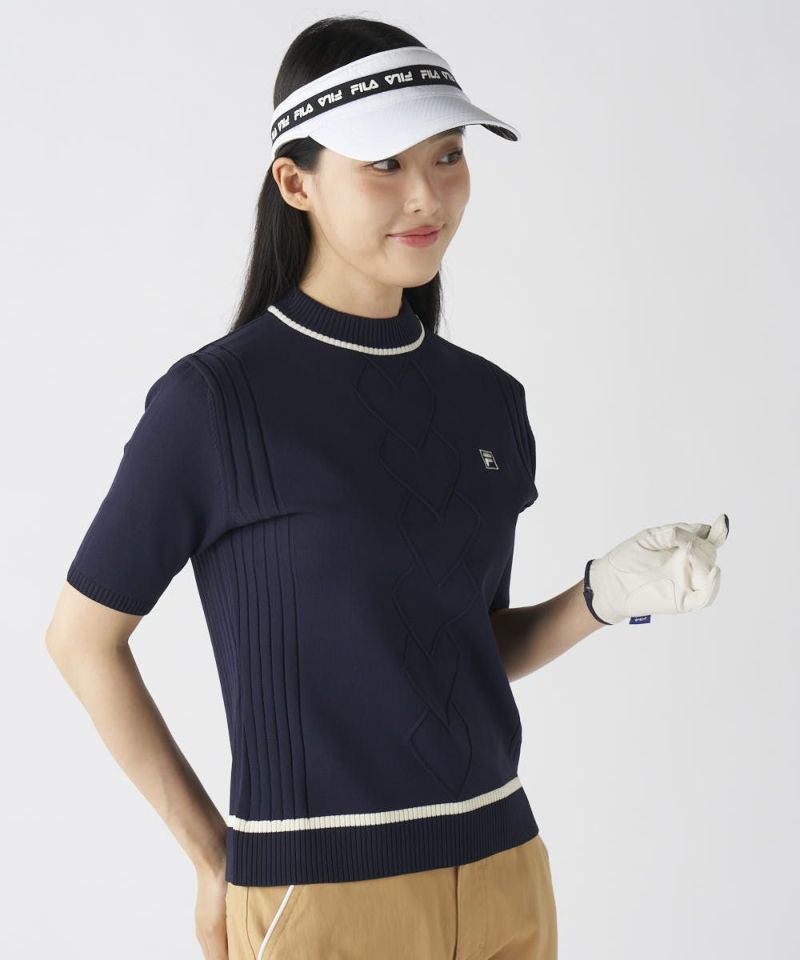 ハート型編み半袖モックネックニットシャツ