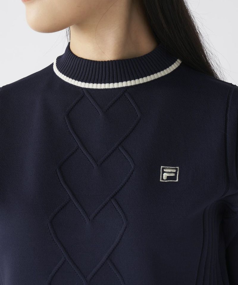 フロントにあしらったハート風のケーブル編みが上品なアクセント。