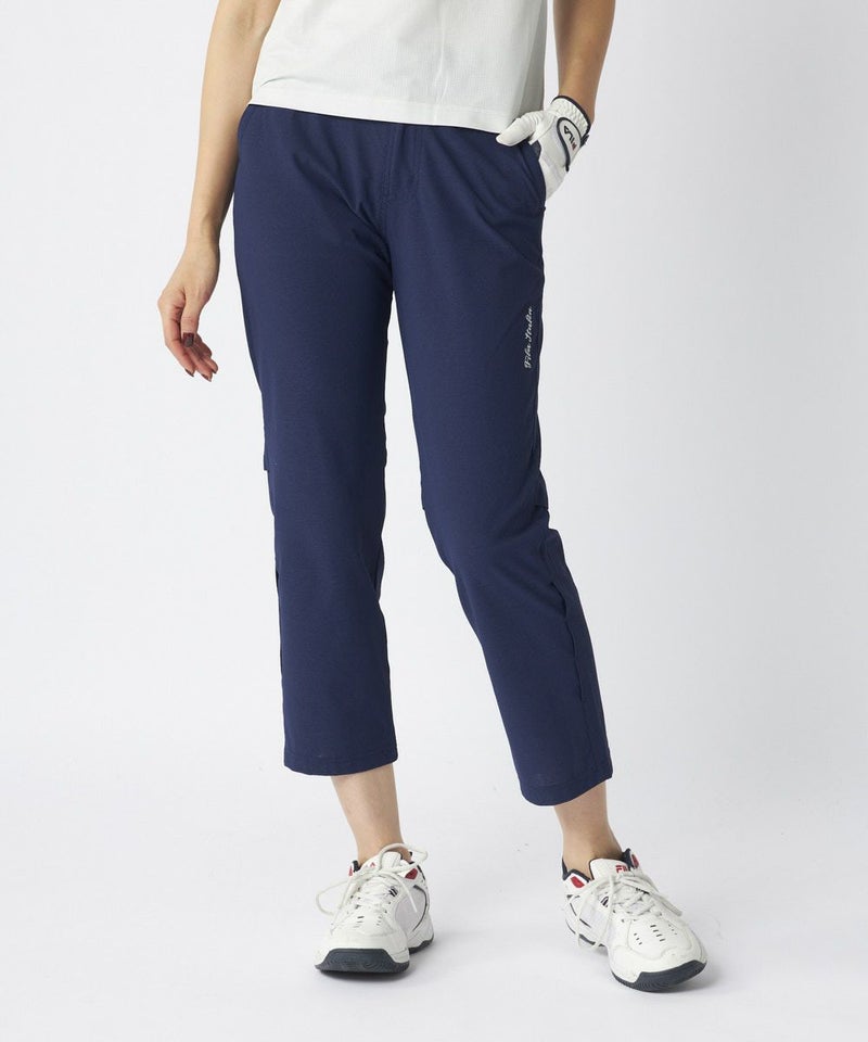 縦横斜めに伸びるストレッチパンツなので、ゴルフの動きに合わせて自在に伸びて動きやすさ抜群です!クロップド丈なので、裾上げ不要です。裾口から風が通り、涼しく着用できます。夏はべたつくからロングパンツは履きにくい、、を解消できるロングパンツです。