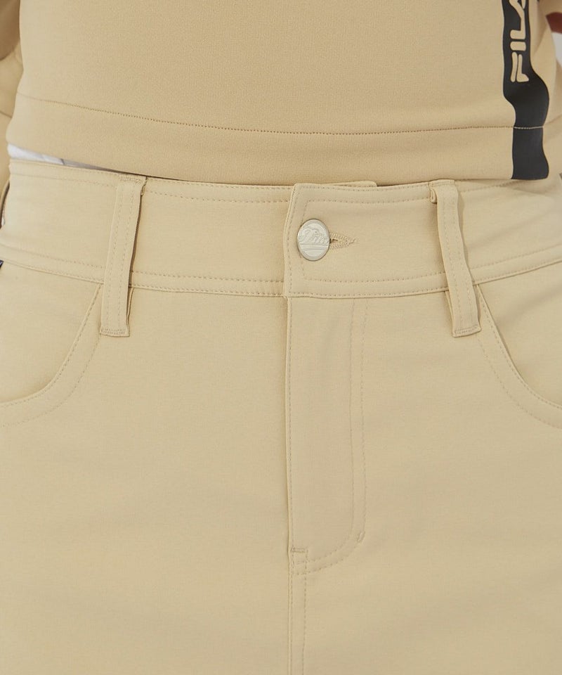 ストレッチ性に富んだ撥水素材を使用。ジャガードのウエストリブを取りいれたスポーティーなデザイン。裾スリットと後ろプリーツで女性らしい魅力をプラス。