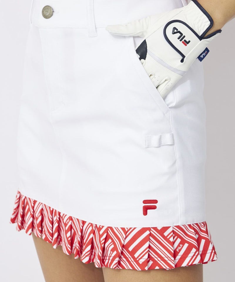 裾のプリント柄プリーツで可愛らしさを添えたデザインのスカート。