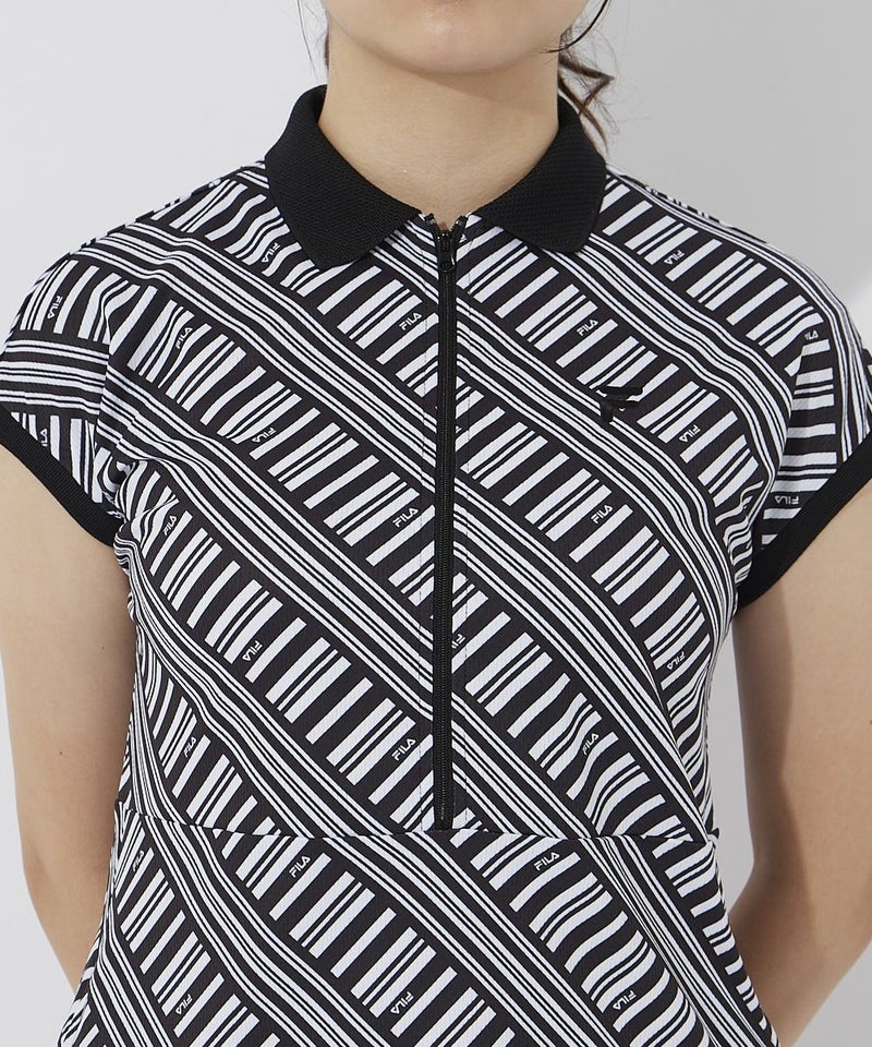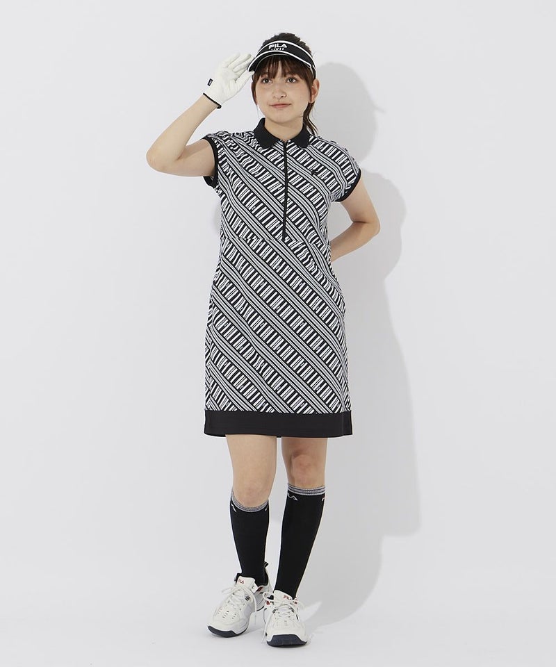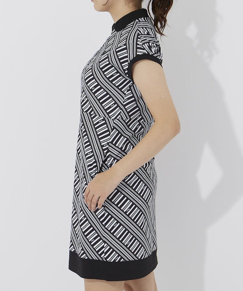 ウエスト位置を高めに設定した、腰高脚長効果のあるフレンチスリーブタイプのワンピース。ファスナー開きで着脱楽々。吸汗速乾、UV、遮熱や接触冷感など、機能たっぷりの素材を採用。