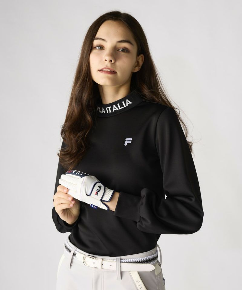 ジャガードのリブ衿がポイントのモックネックシャツ。袖口をふんわりさせたフェミニンなデザイン。裏面がベロア調の柔らかく肌触りの良いストレッチ素材を使用。袖口のボリュームは程よいボリューム感なので、インナーとしてもご利用いただけます。