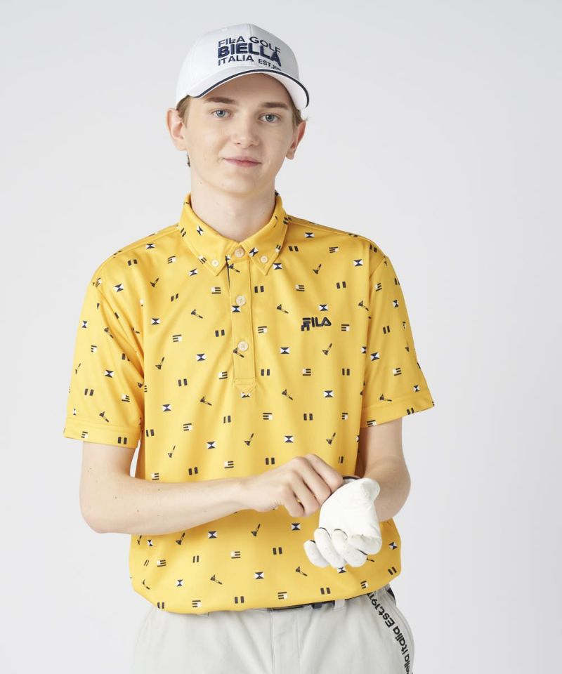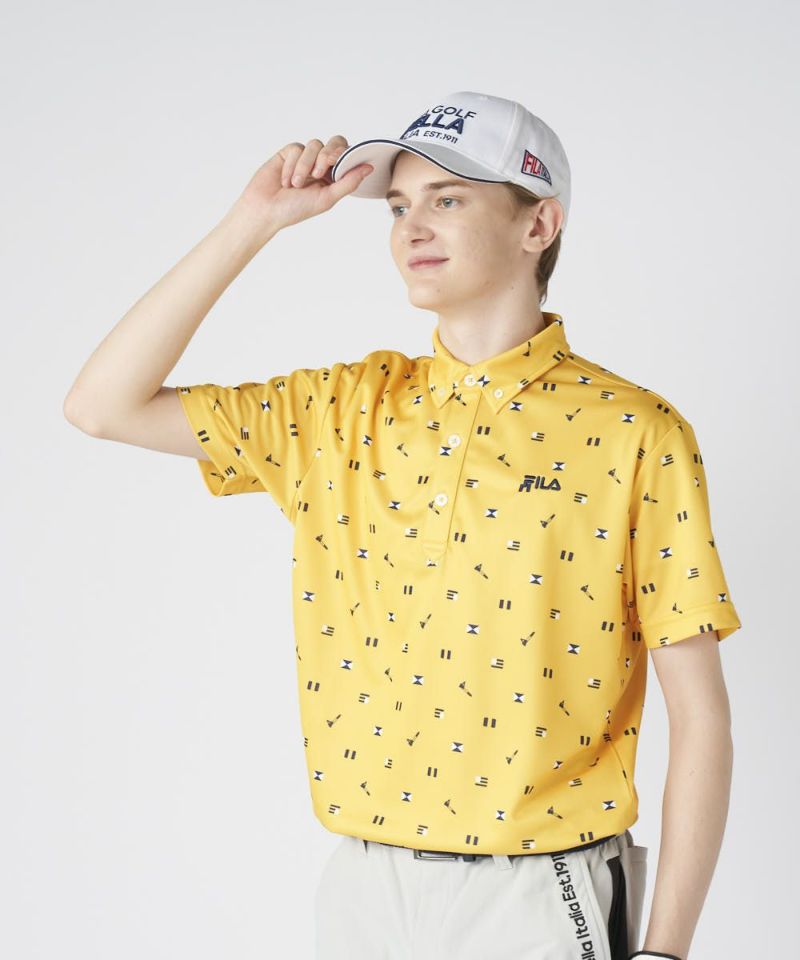 フラッグなど、ゴルフにちなんだデザインがちりばめられたおしゃれな半袖シャツ。
