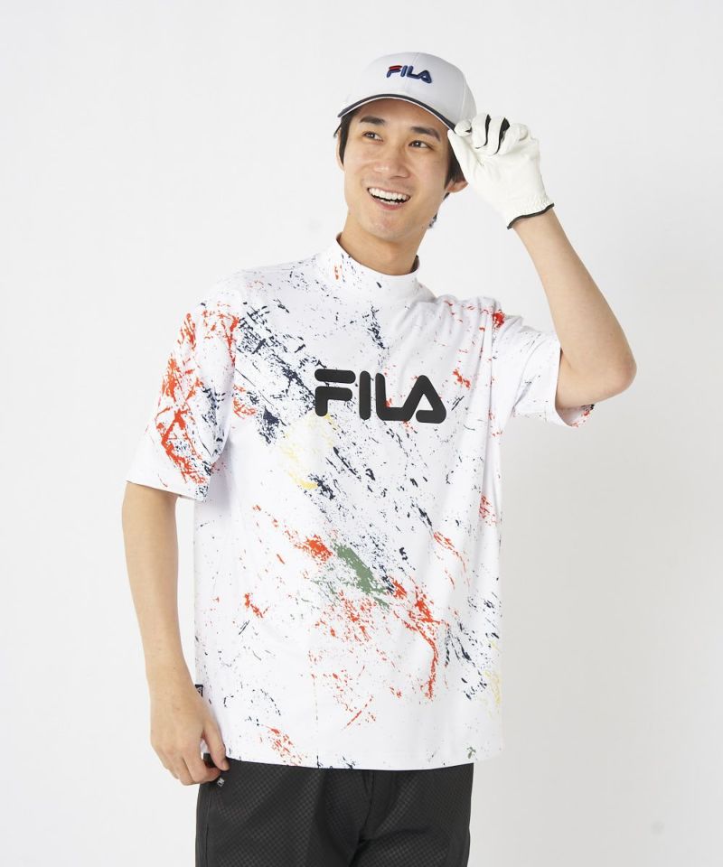 かすれプリント モックネックシャツ | 吸汗速乾・UVカット・接触冷感・ストレッチ