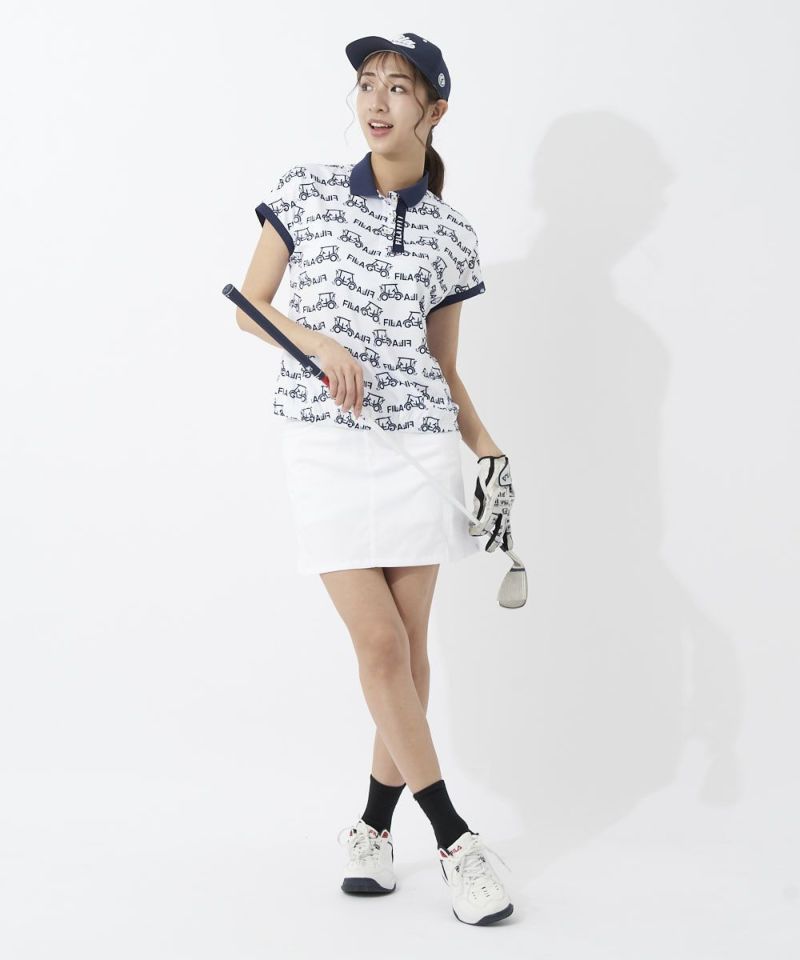 カートをモチーフに使用したポップなプリント柄の半袖シャツ。肌あたりの良いアームホール切替のない、フレンチスリーブタイプ。裾口は、アウトにしてもスマートにキマる、ゴムシャーリング仕様。
