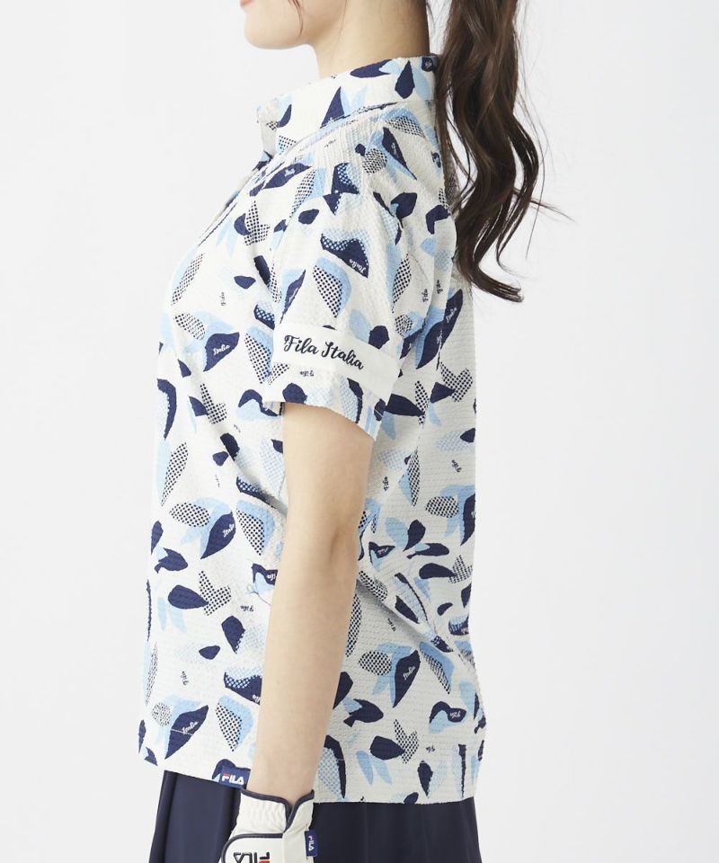 シアサッカー素材 リゾート柄半袖シャツ