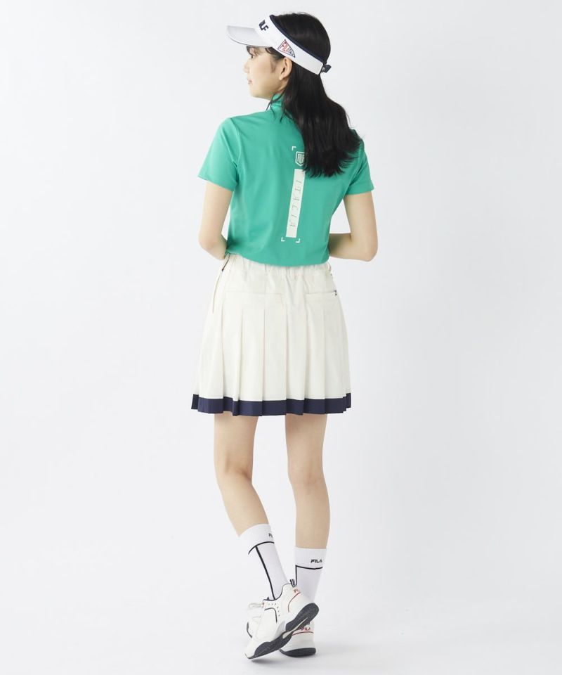 サラッとした素材で夏ゴルフにもおすすめなモックネックシャツ。シンプルなデザインながら、バックデザインもおしゃれです!パンツ、スカート問わずかっこいいスポーティなスタイルにおすすめです