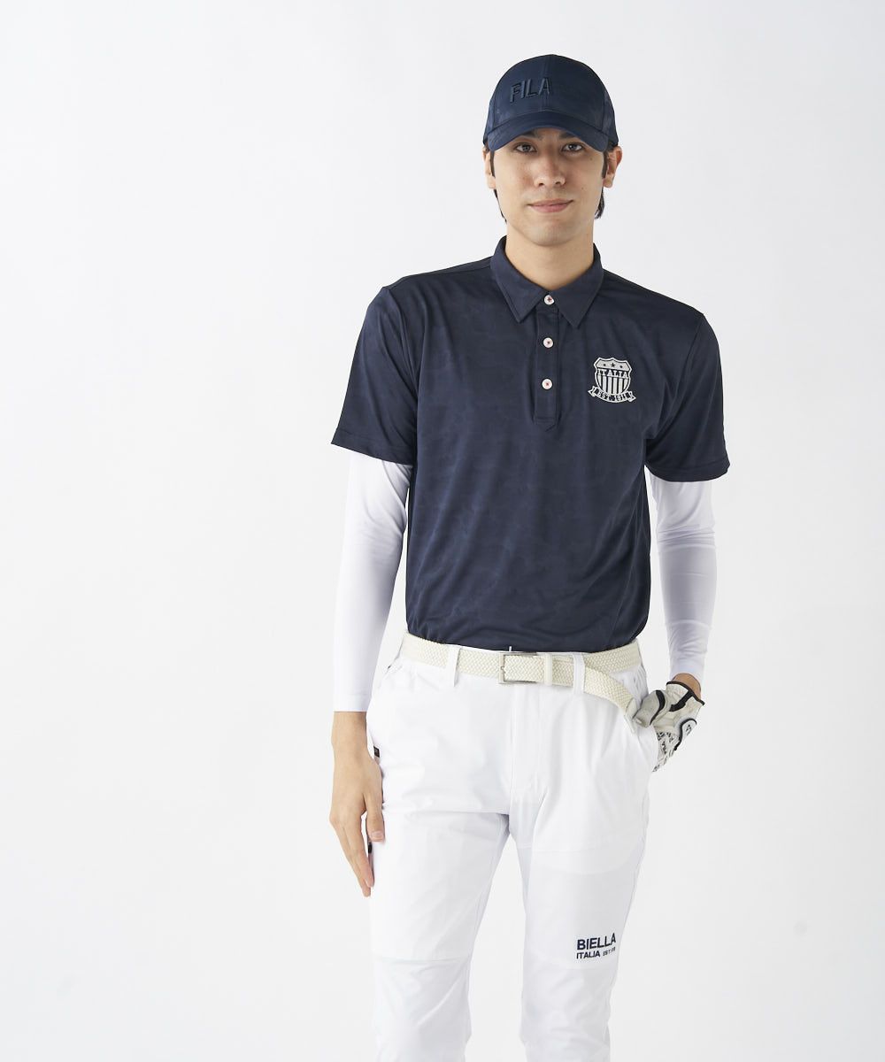 ジャガード編みモックネック半袖シャツ | 吸汗速乾・UVカット