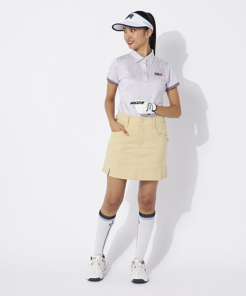 FILA GOLFのロゴをランダムにジャガードで表現したスポーティなシャツ。ストレッチ性の良い再生ポリエステル素材を採用しています。ジャガード生地は立体感+高級感があるため品のある印象に魅せてくれます。袖口リブのヘリテージストライプテープがアクセントに!左の胸元と背面のロゴがポイント