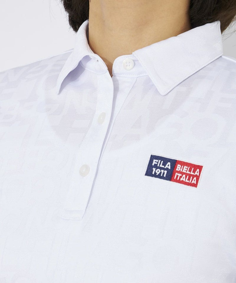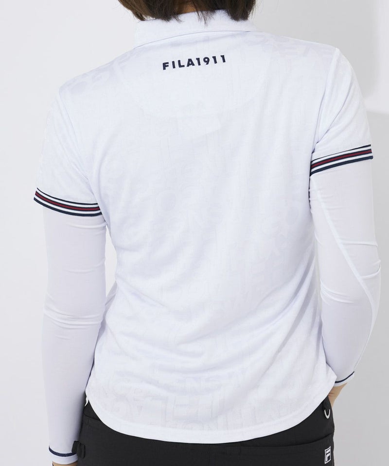 FILA GOLFのロゴをランダムにジャガードで表現したスポーティなシャツ。ストレッチ性の良い再生ポリエステル素材を採用しています。ジャガード生地は立体感+高級感があるため品のある印象に魅せてくれます。袖口リブのヘリテージストライプテープがアクセントに!左の胸元と背面のロゴがポイント