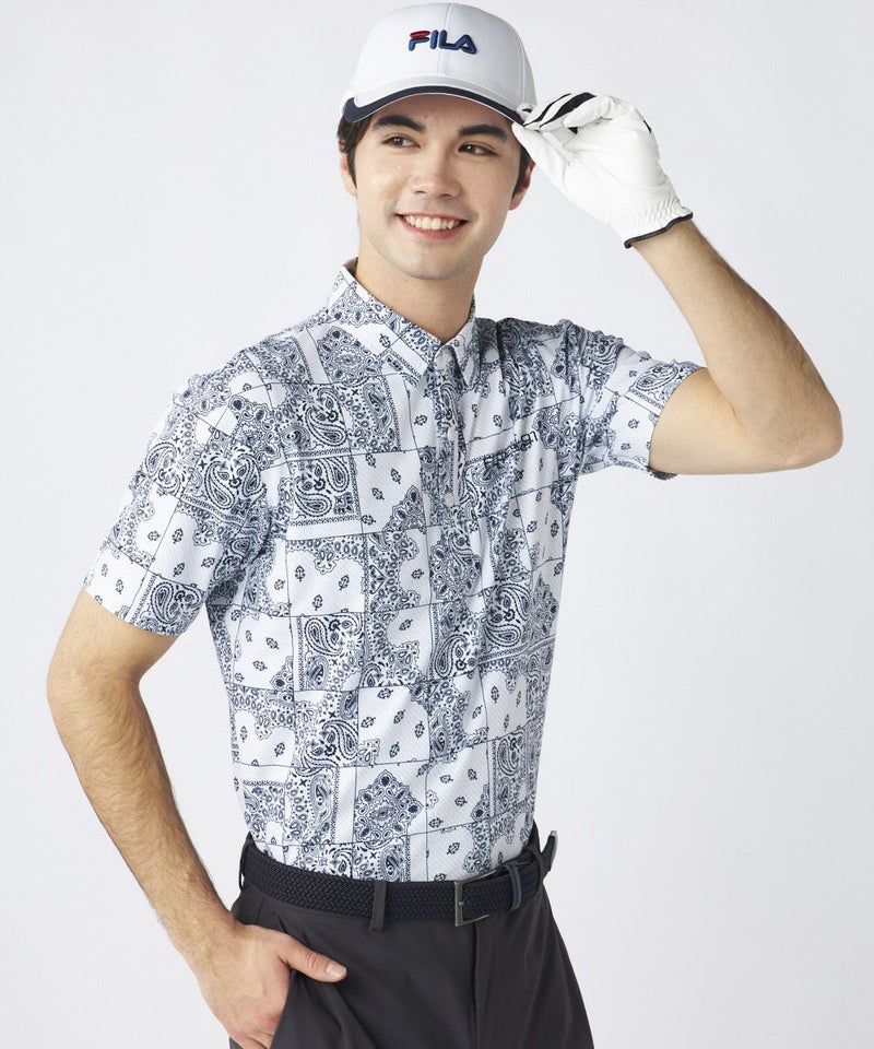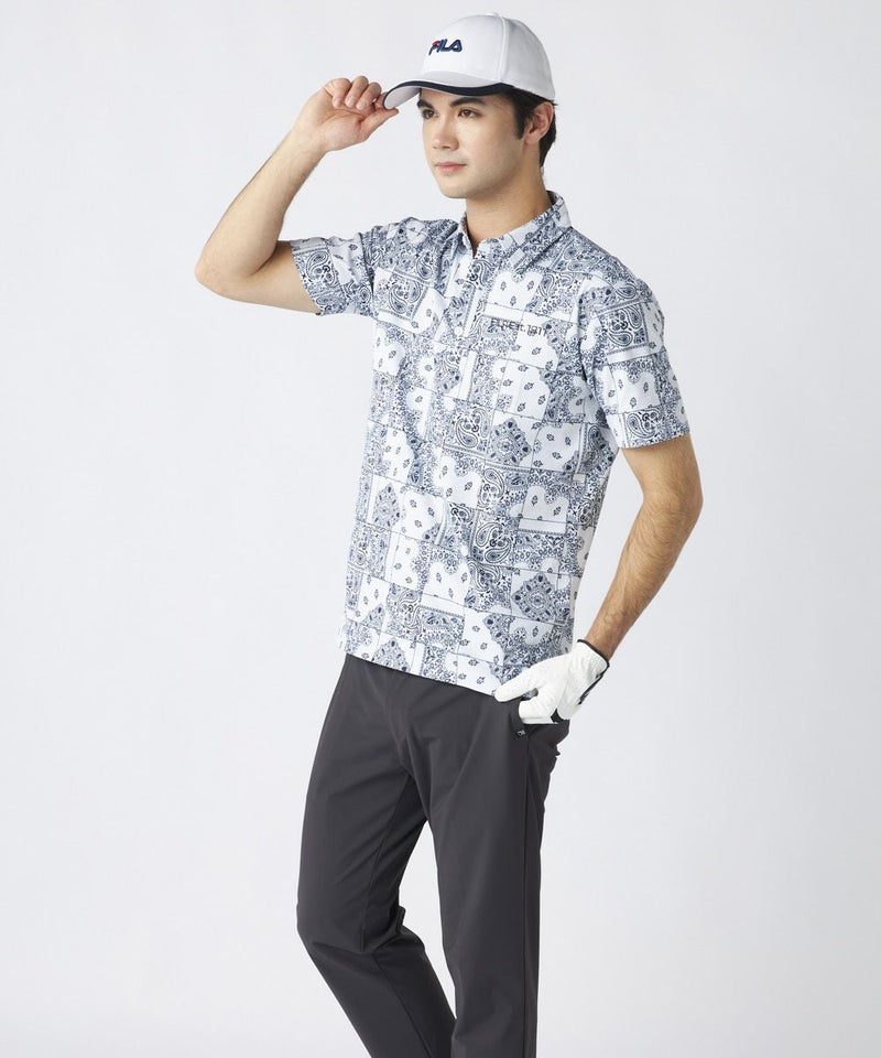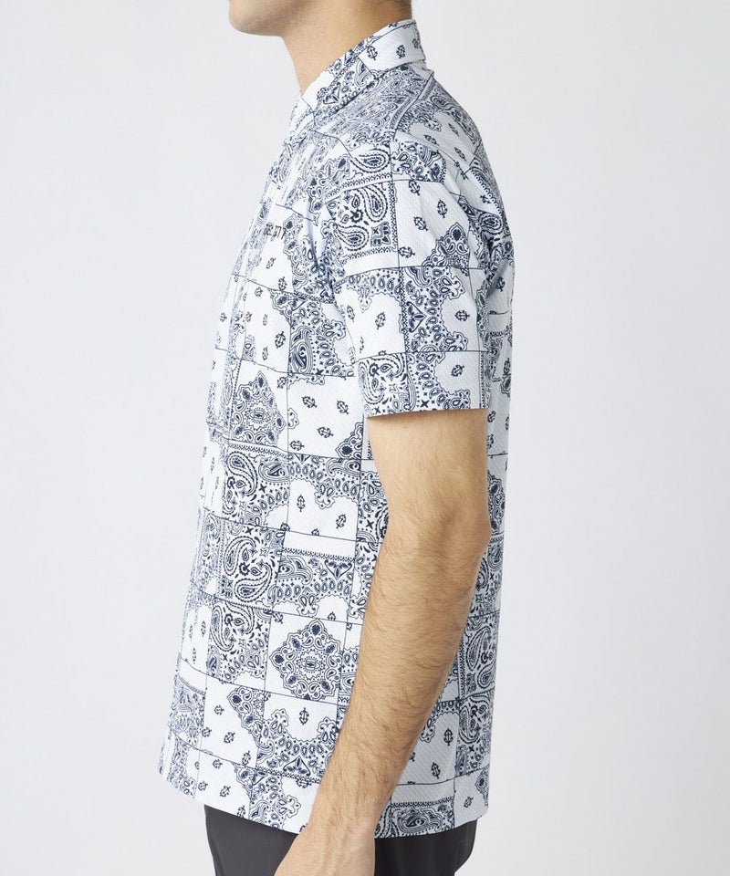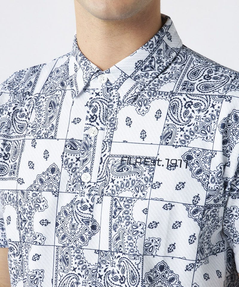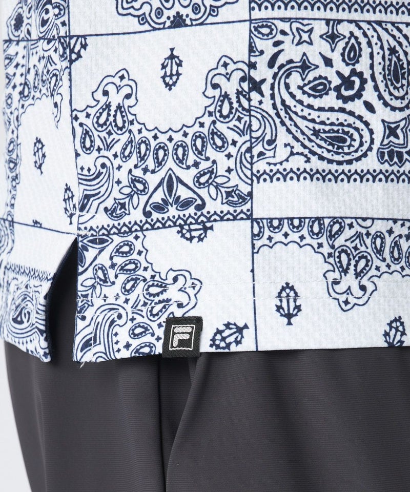 ペイズリー柄をランダムにいれた柄で、おしゃれな一枚です。シンプルなボトムスと合わせたコーディネートがおすすめです。春や秋にはインナーとして襟もとに柄を見せるのもおしゃれです。