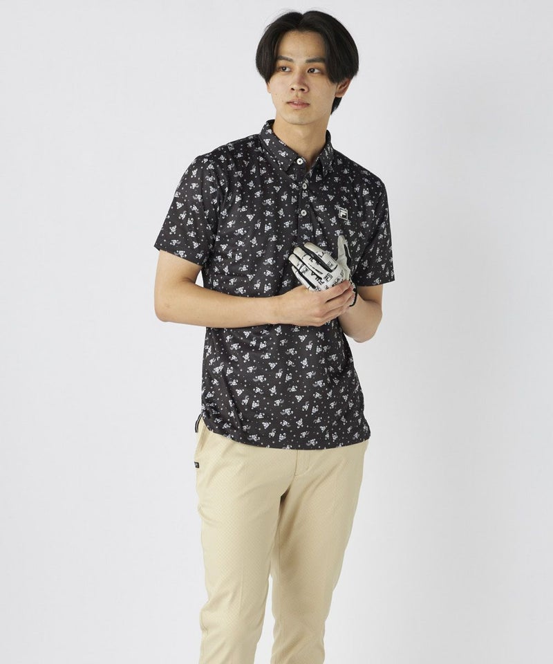 小さい花をちりばめた、さりげなくかわいさもあるゴルフシャツです。さりげなく花柄なのがポイントです。シンプルなパンツと合わせておしゃれにコーディネートを楽しみましょう。
