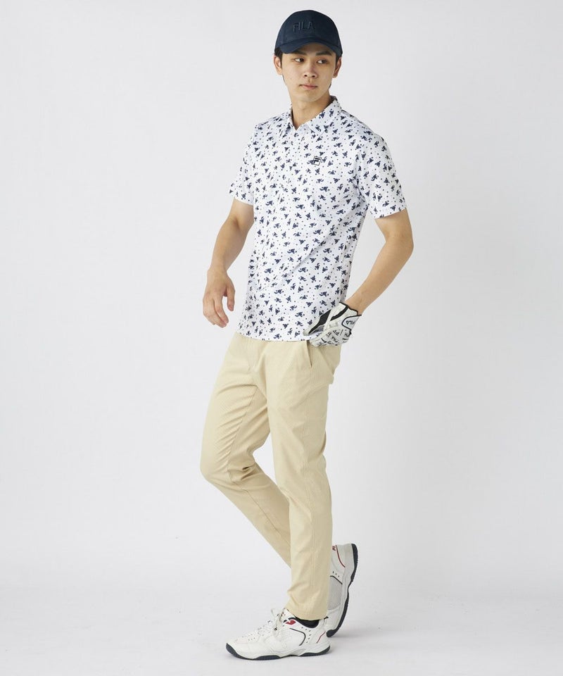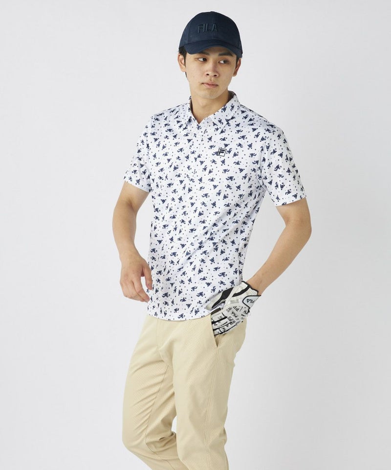 小さい花をちりばめた、さりげなくかわいさもあるゴルフシャツです。さりげなく花柄なのがポイントです。シンプルなパンツと合わせておしゃれにコーディネートを楽しみましょう。