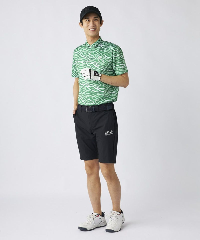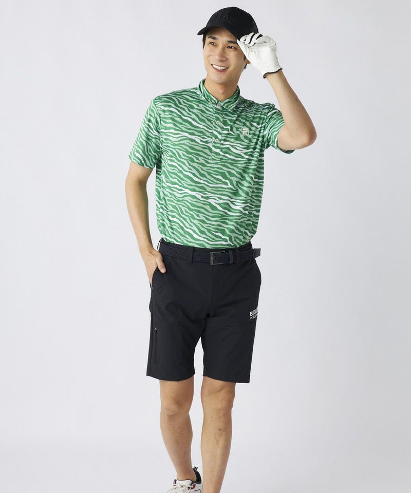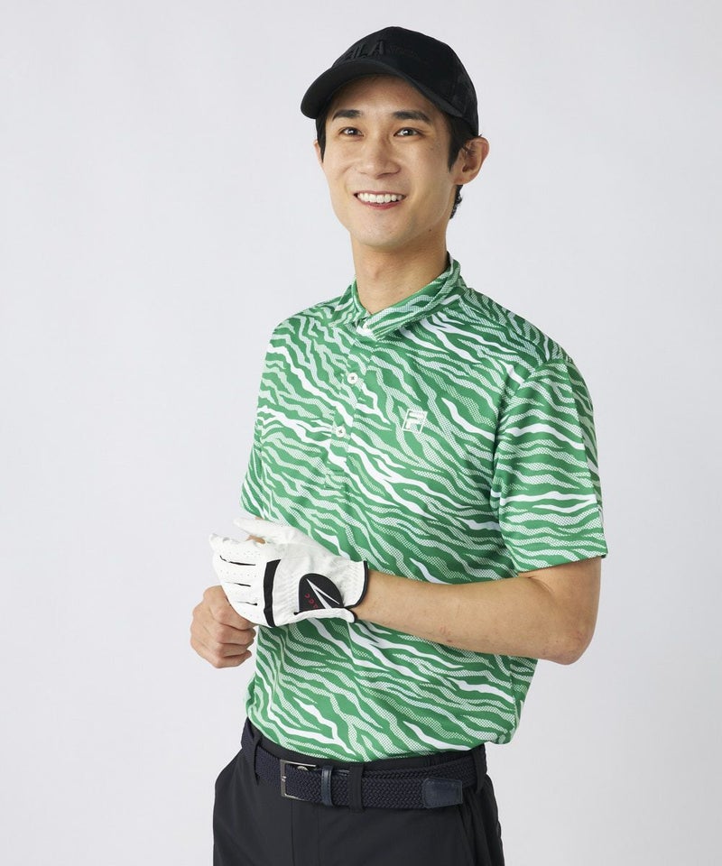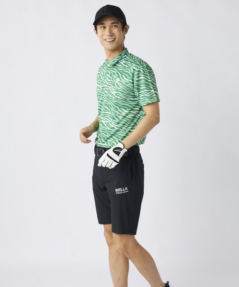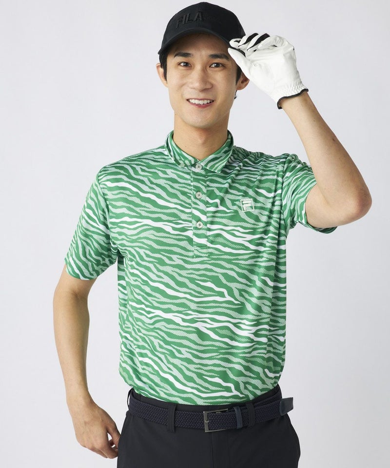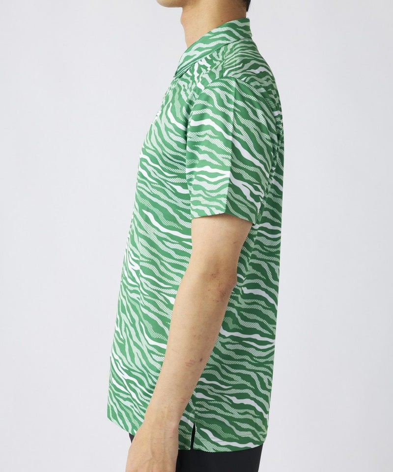 ゼブラ柄風の柄が特徴のオシャレなゴルフシャツです。ベーシックカラーからコーデのポイントになるグリーンと、お好みに合わせてお選びいただけます。ベーシックなボトムスとの相性のよいポロシャツです。