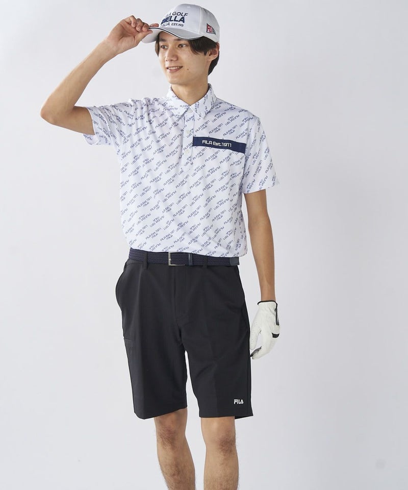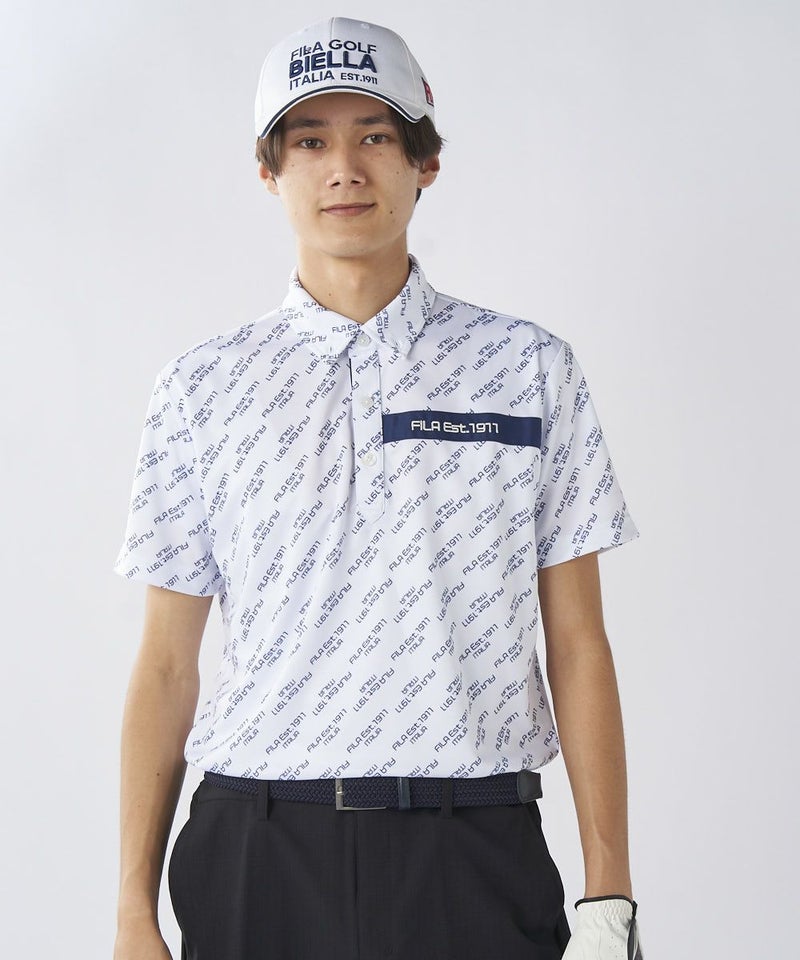 ロゴ柄ががおしゃれな半袖シャツ。柄シャツの中でも、ゴルフ以外でも着やすいデザインで、普段使いにもおすすめです。ベーシックカラーなので、カラーボトムスとのコーディネートも楽しめます。