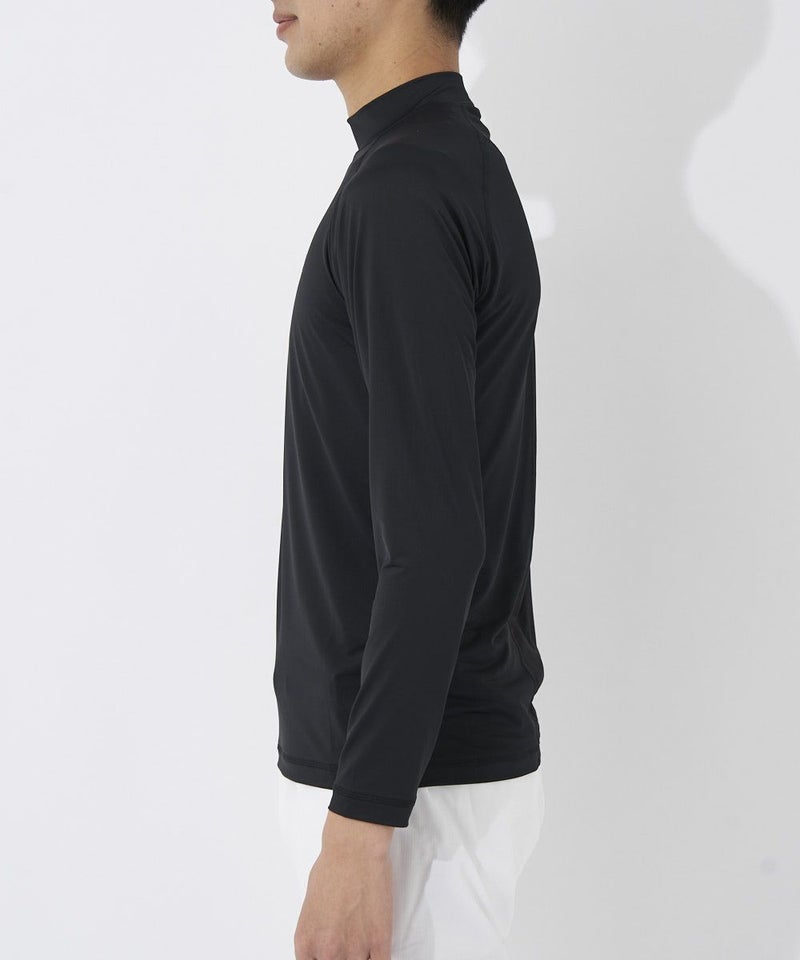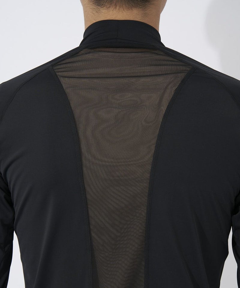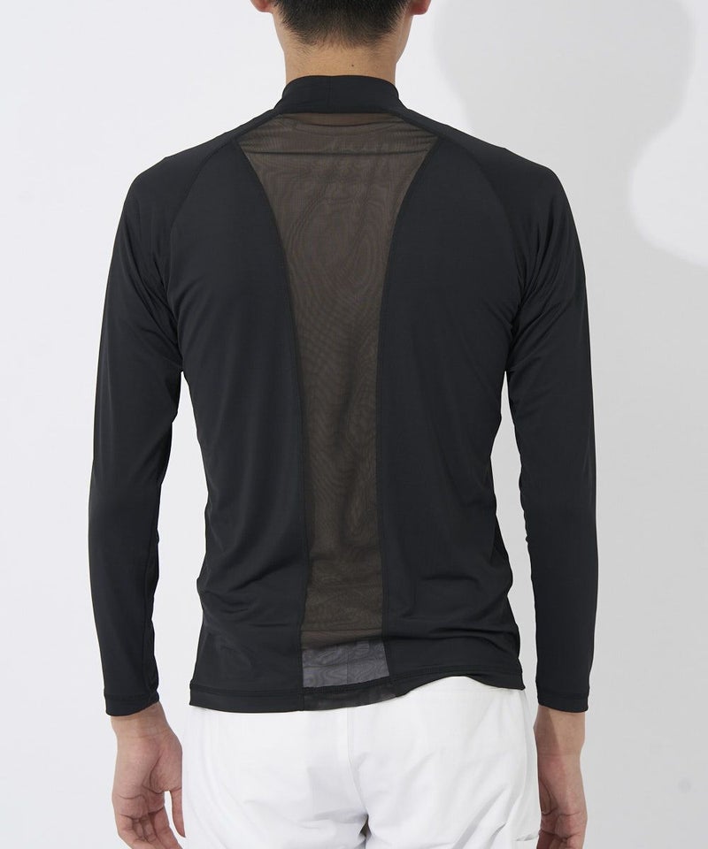 接触冷感の機能糸を使用したベア天竺ハイネックインナー。背中部分にメッシュ素材を切り替えることで通気性もアップ。動きやすいラグランスリーブ仕様です。合わせやすいベーシックカラー展開で、シャツとのレイヤードを考えたサイズ感になっています。