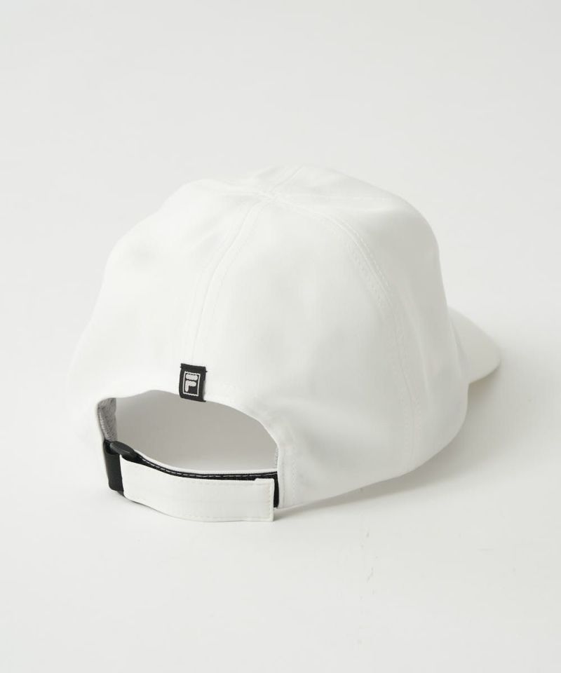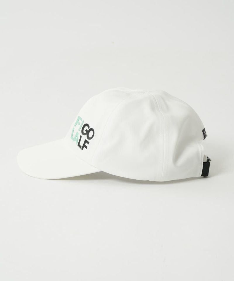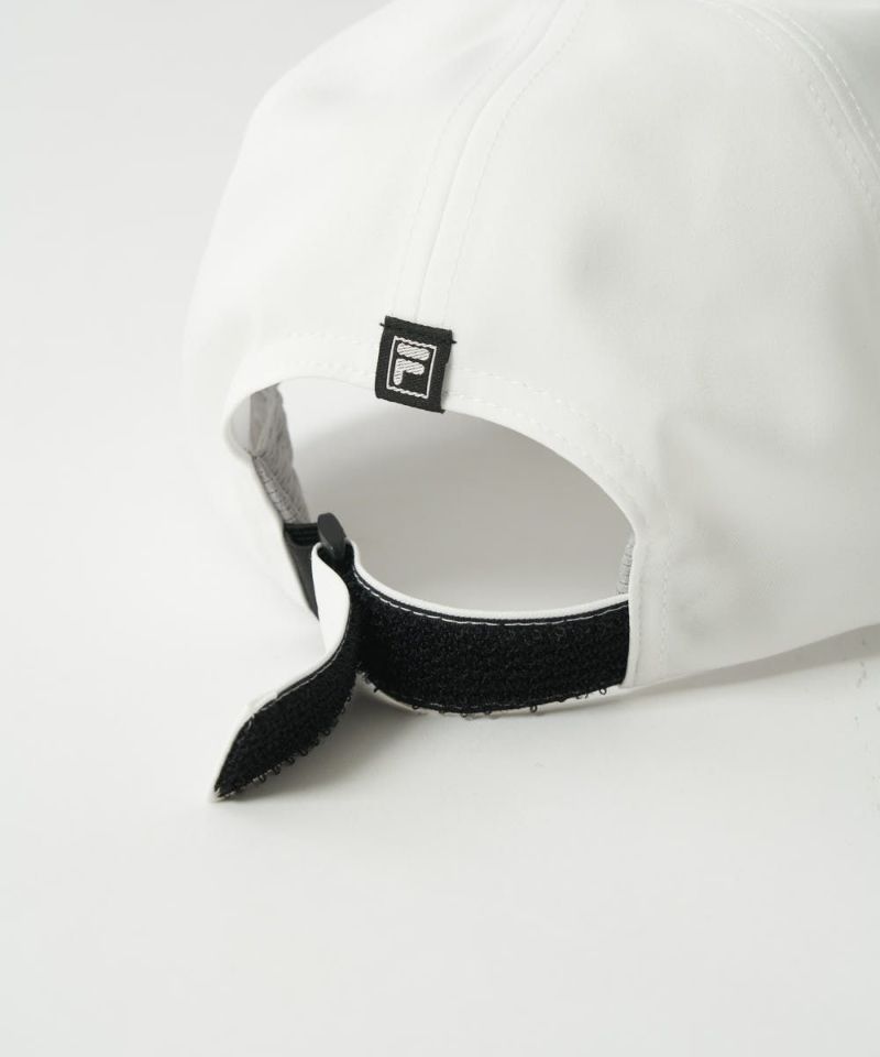 撥水加工のタフタ素材のシームレスキャップ。撥水加工+裏シームテープ使用で雨の日でも快適にプレーできます。立体感のあるFILAGOLFシリコンプリントが入ります。