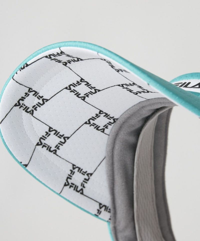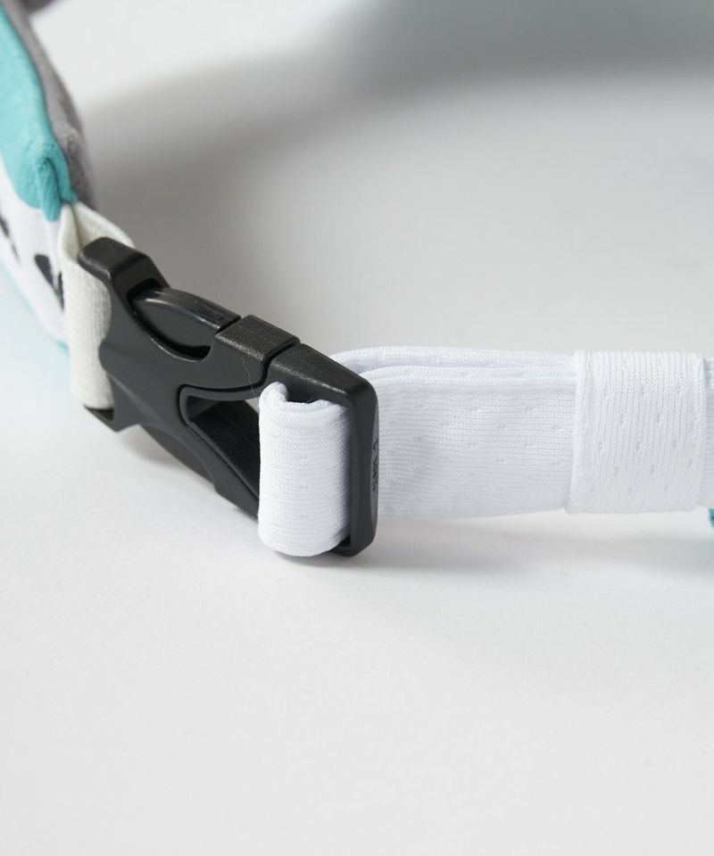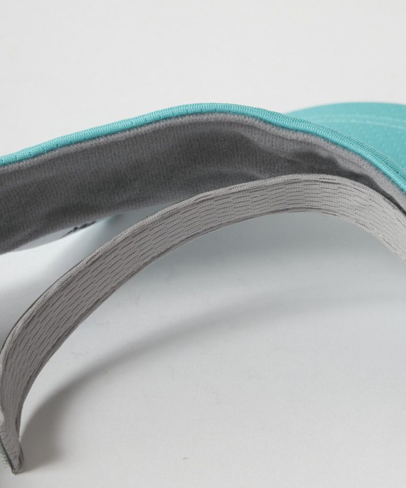 少し大きめの軽量ツバが特徴のサンバイザー。ロゴテープがデザインポイント。汗やファンテ゛ーションがついても大丈夫なよう、取り外して洗えるテープライナー付き。
