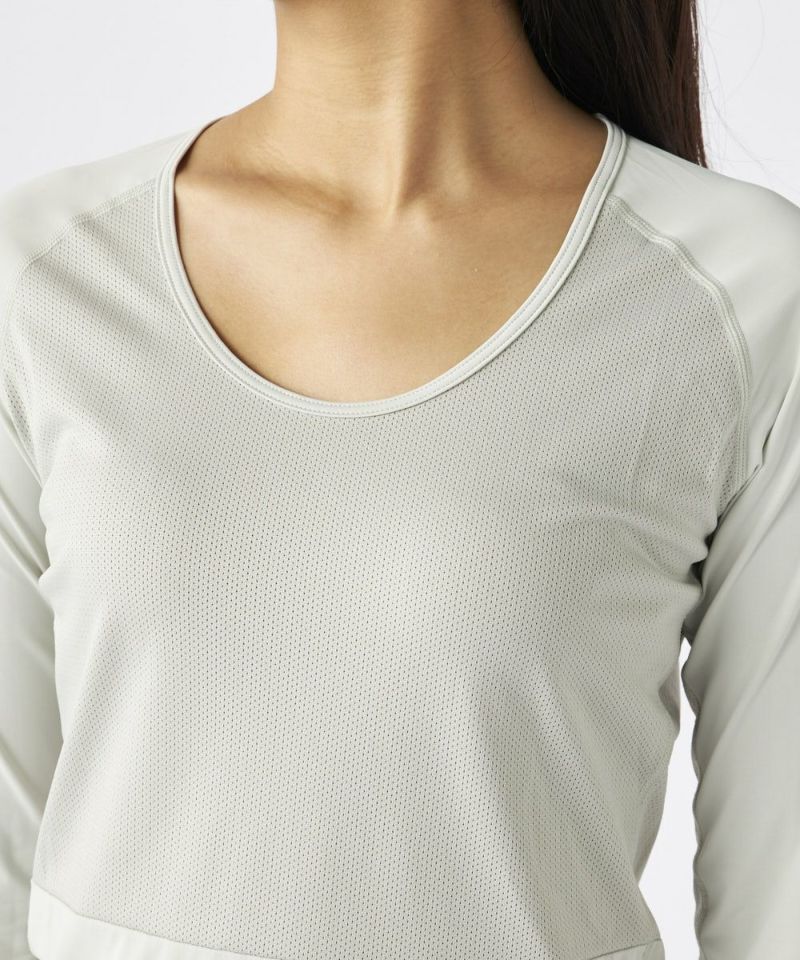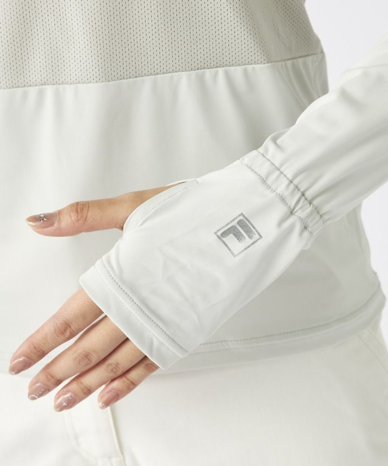 前身頃と背中部分にメッシュを使用した、インナーシャツ。手の甲まで隠れるデザインで、日焼け対策もばっちりです。