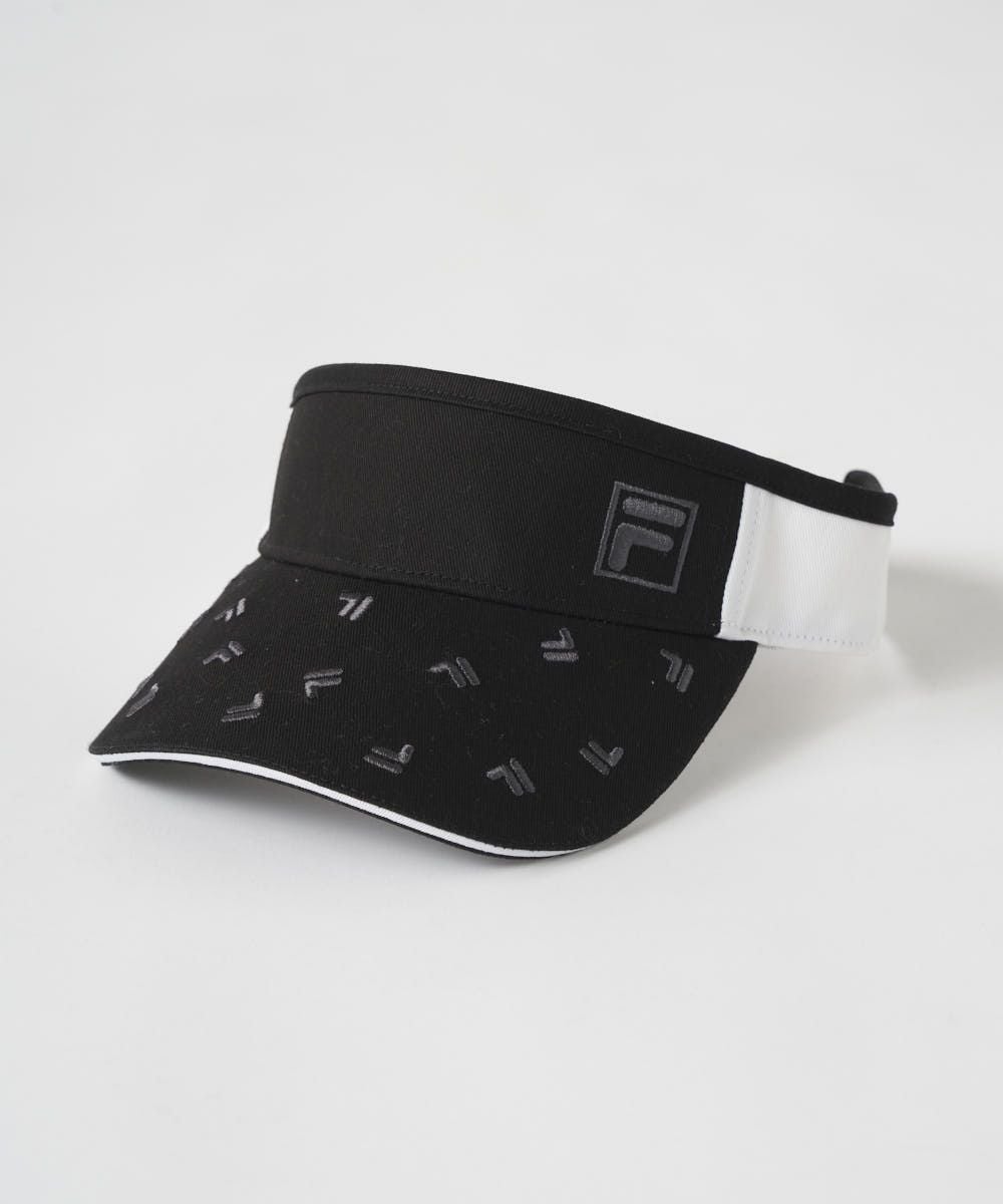 総柄のブランドロゴが、スポーティーかつ華やかな表情を作ります。バイザーならではの開放感と、FILAらしいグラフィカルなデザインが融合。サイドからのシルエットも美しく、スイング時もスマートな印象を崩しません。