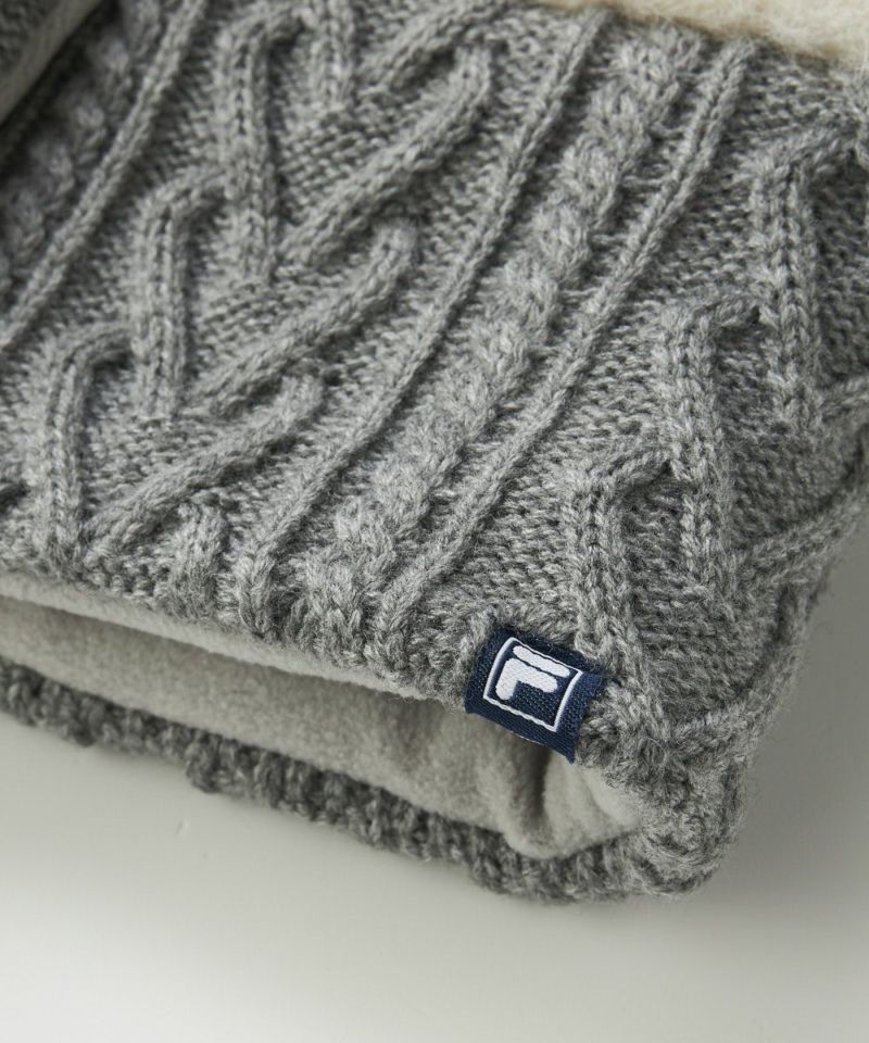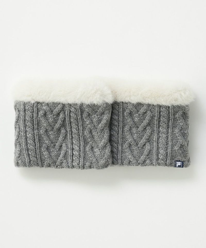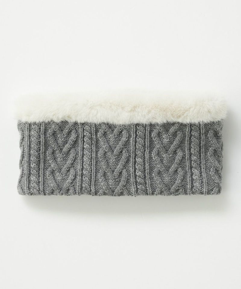 顔回りを華やかに暖める。フリース裏地付きケーブルニットウォーマー