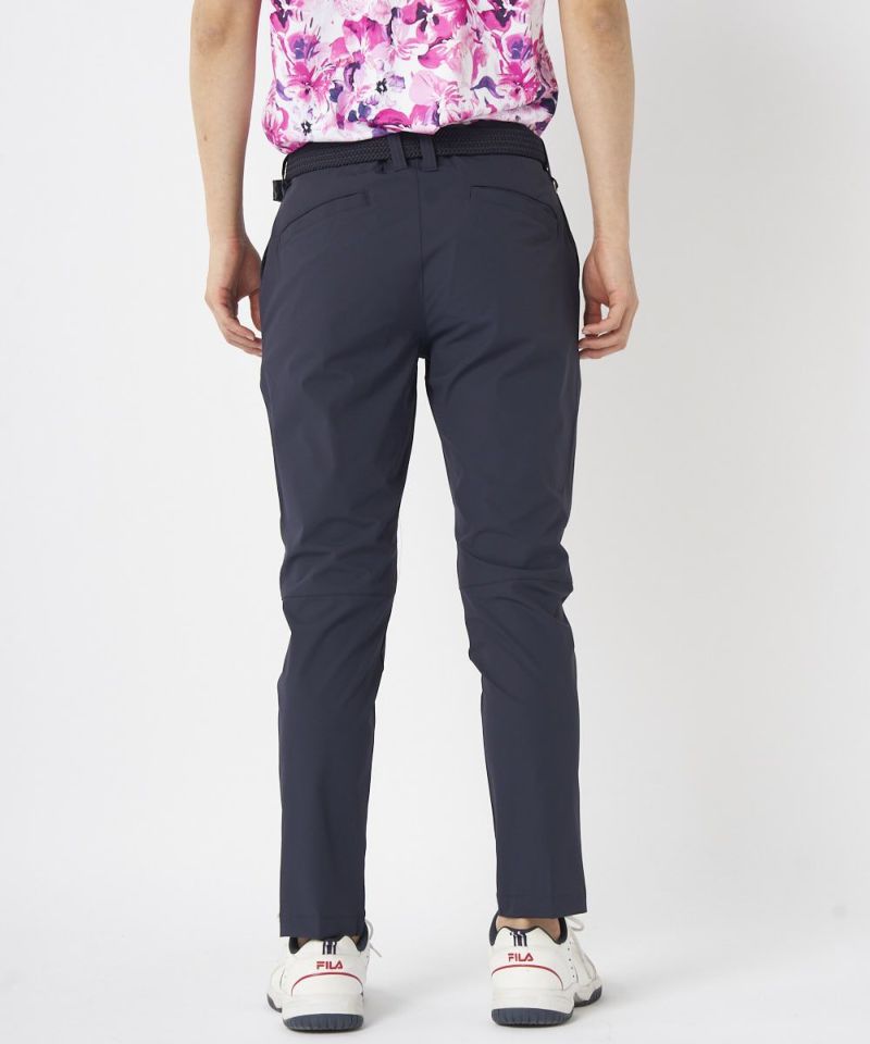撥水コーティング加工で雨をしっかりガード。天候が変わりやすいゴルフシーンでも安心。裾上げいらずの9分丈仕様に加え、細身のテーパドシルエット。すっきりとしたシルエットで、スタイルアップも叶います。
