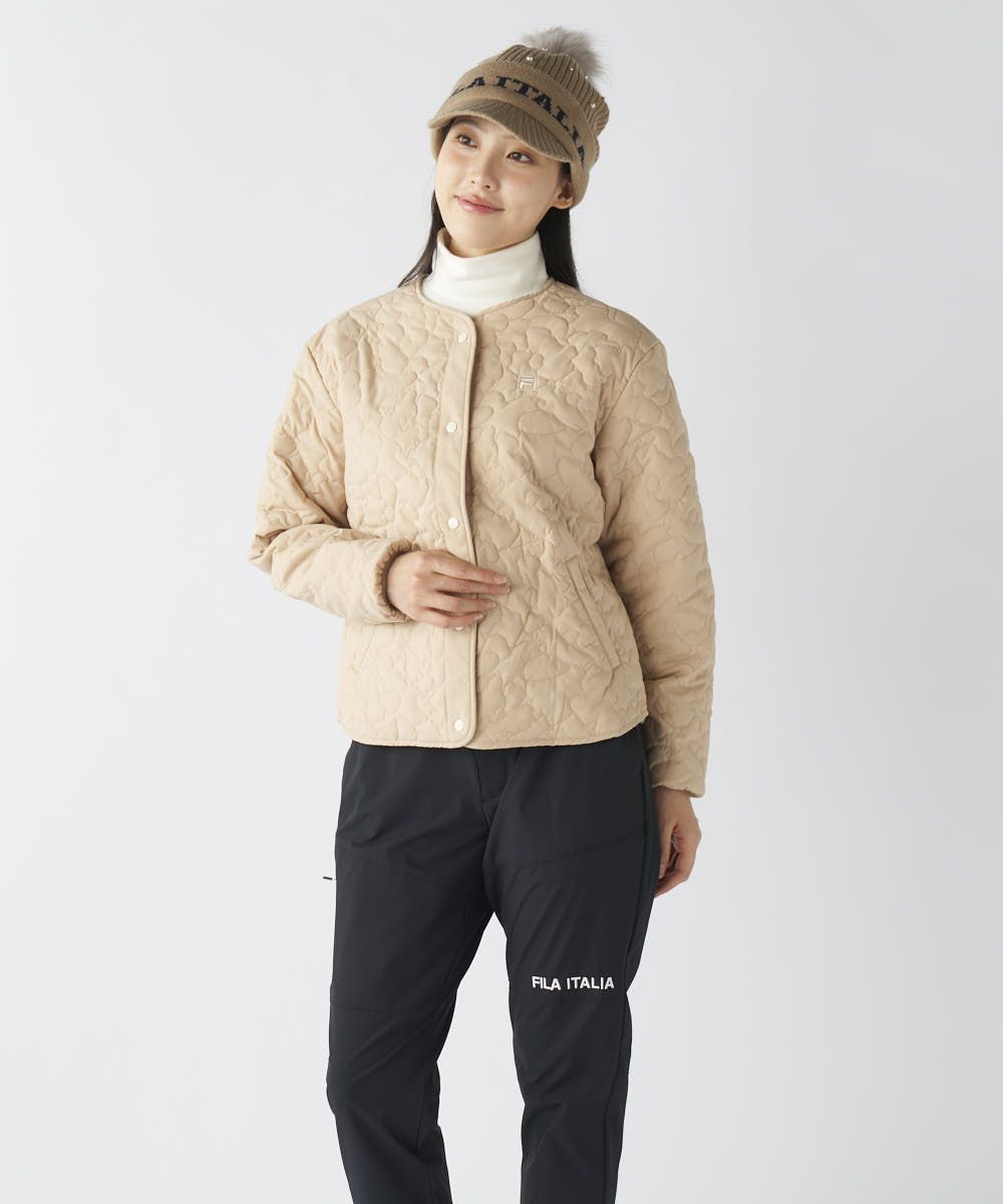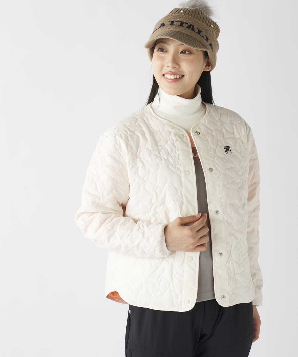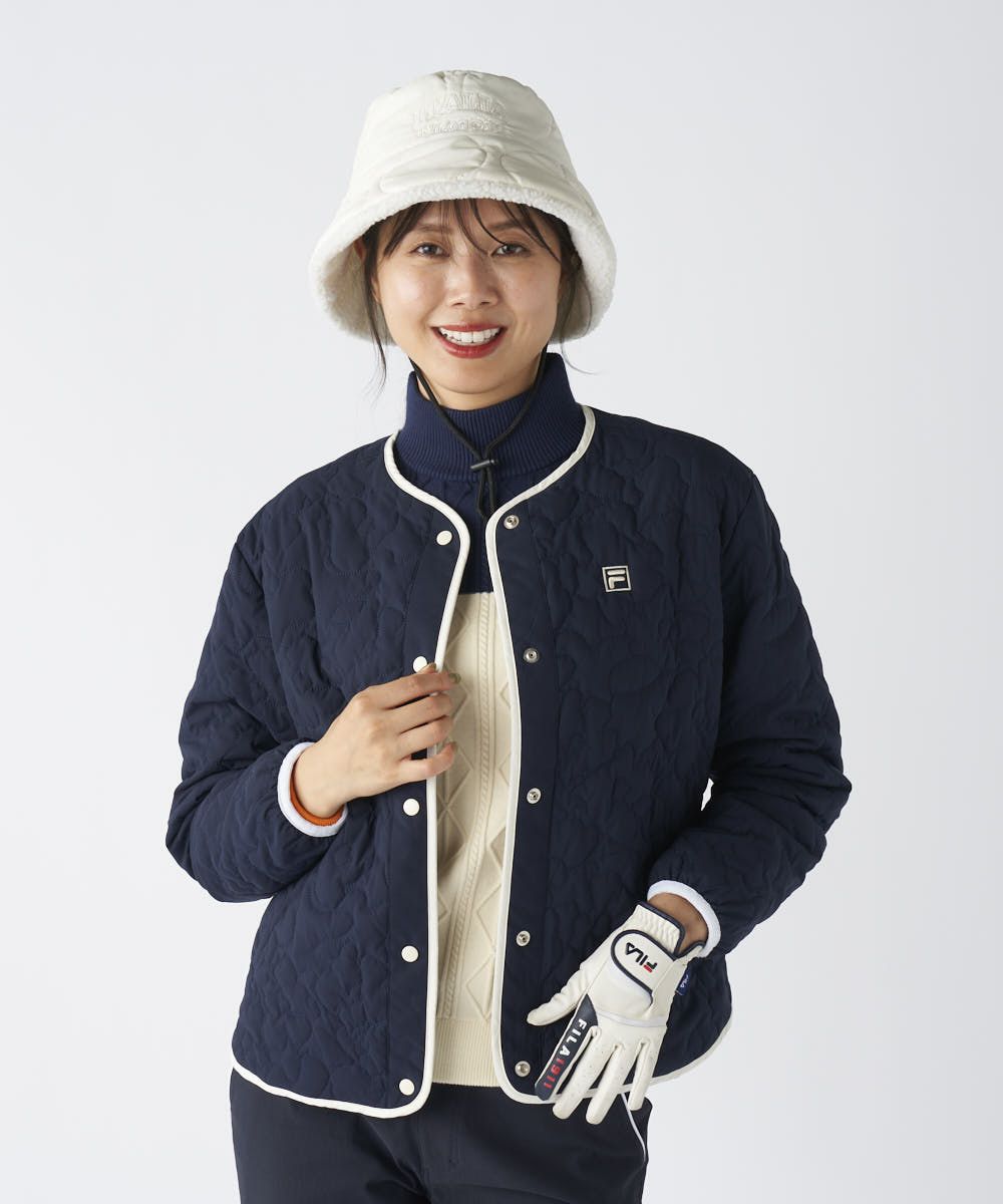 風を防ぎ、暖かさを逃さない。タイポロゴが映える、洗練キルトジャケット。