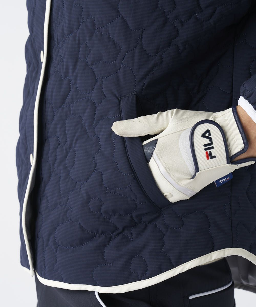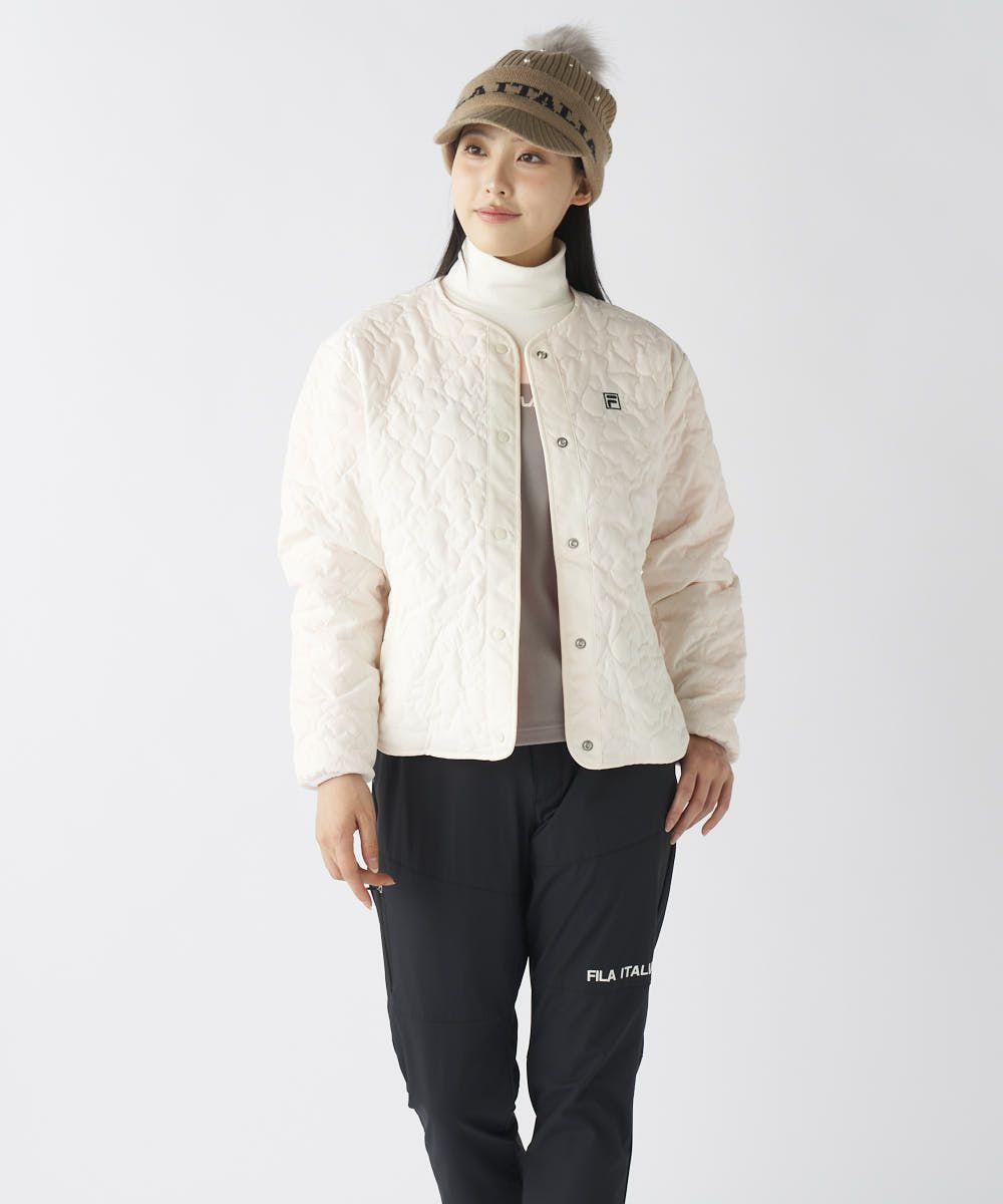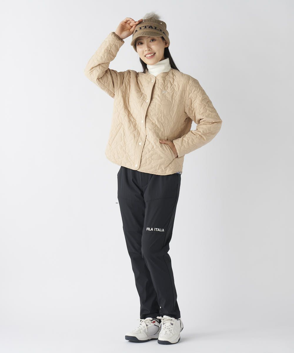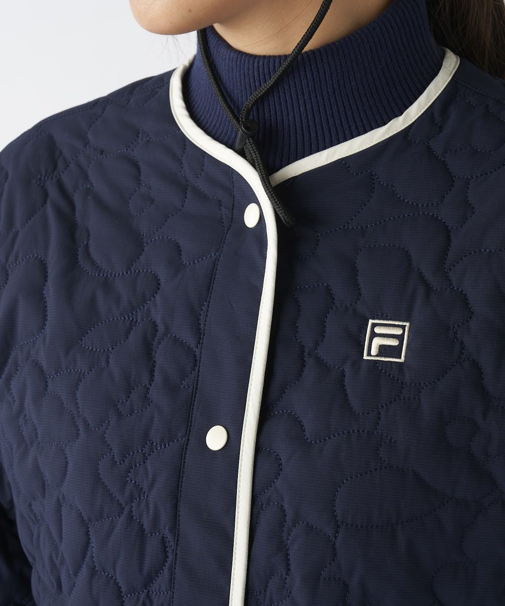 風を防ぎ、暖かさを逃さない。タイポロゴが映える、洗練キルトジャケット。
