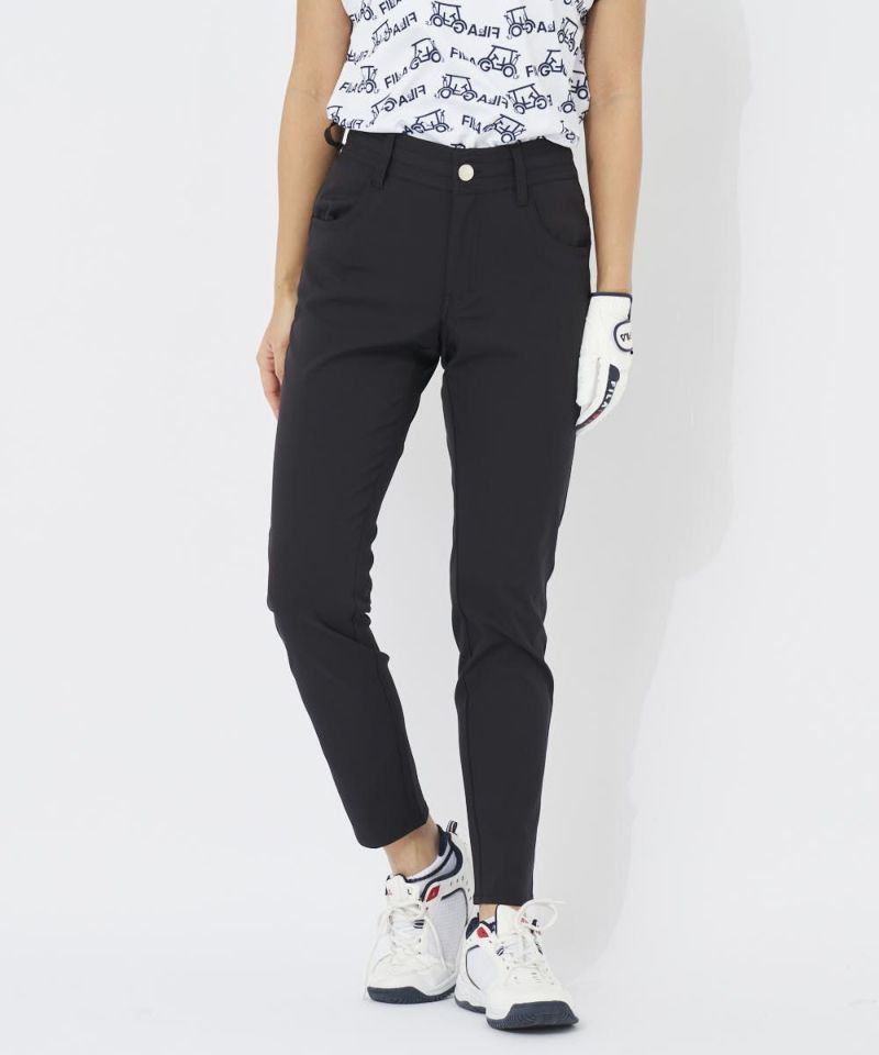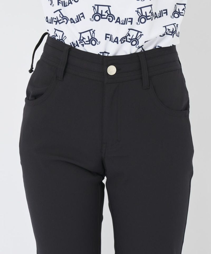 ストレッチ性に富んだ吸水撥水素材を使用した、裾上げいらずの9分丈パンツ。ヨークの配色切替やグラフィック使いで、バックスタイルにアクセント。