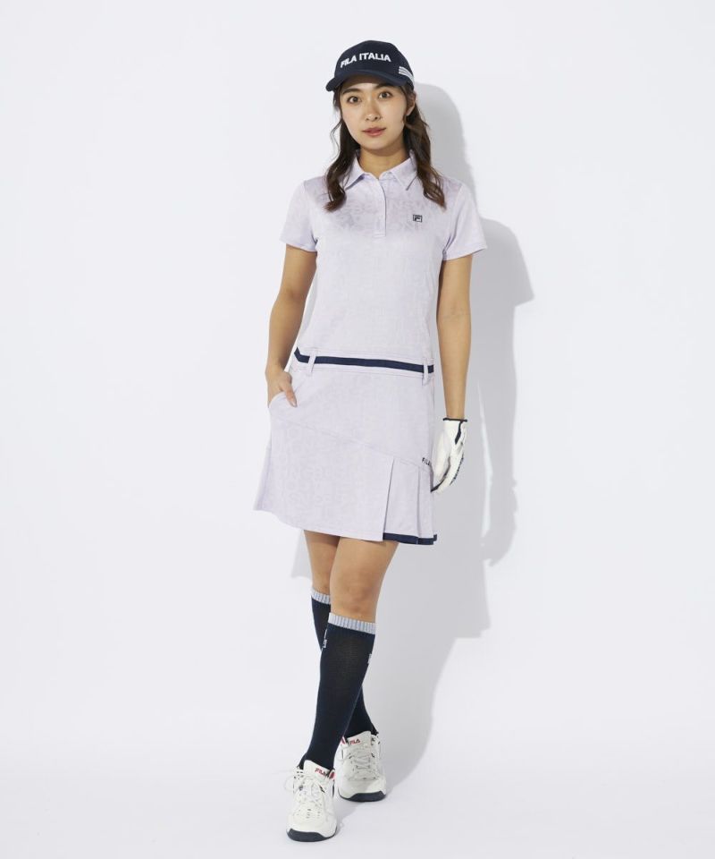FILAGOLFのロゴをランダムにジャガードで表現した、ストレッチ性の良い再生ポリエステル素材を採用。スカート裾にプリーツを取り入れかわいらしいイメージに。