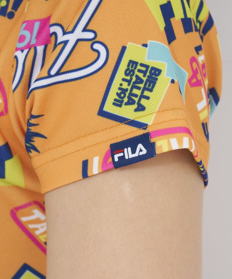 コーディネートの主役になる、ポップで楽しいコミック柄の半袖ポロシャツ。衿リブの首に当たる部分をメッシュ編みにすることで、通気性を持たせました。