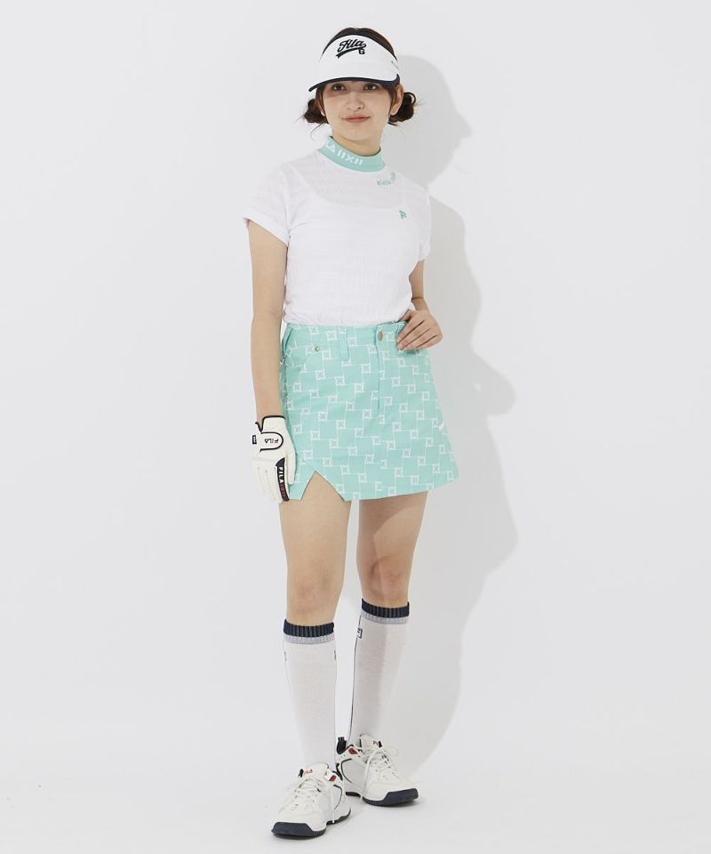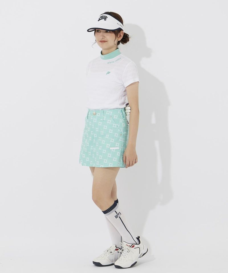 ジャガードでグラフィックを表現したリブ衿が特徴のモックネックシャツ。杢調の、シャーリングがかかった特徴的な素材を採用。